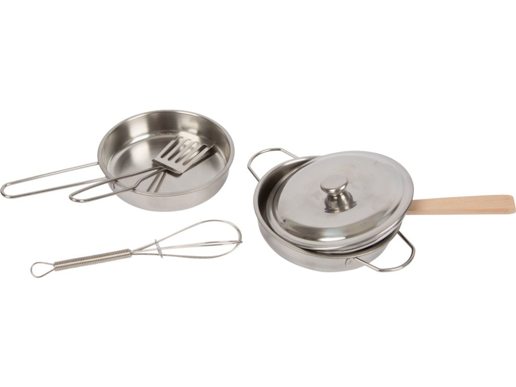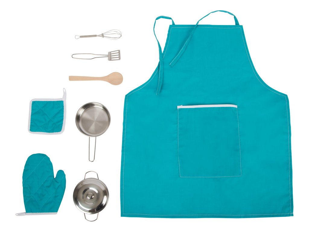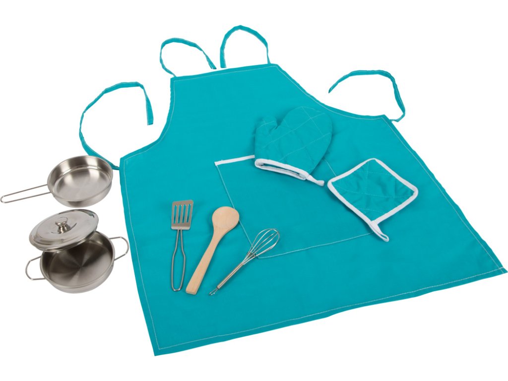 Obsáhlá sada na vaření se skládá z hrnce s poklicí, pánve, metly, špachtle a dřevěné vařečky. V balení také dětská zástěra, podložka pod hrnec a textilní chňapka. Odnímatelné víko hrnce pro realistické hraní. Nádobí a kuchyňské potřeby mají velikost vhodnou pro děti. Zástěra s velkou náprsní kapsou, kam se vejde kuchyňské náčiní. Ideální doplněk do dětské kuchyňky. Podporuje v představivé hře na role. Hlavní vlastnosti: Módní designPodporuje dětskou představivost