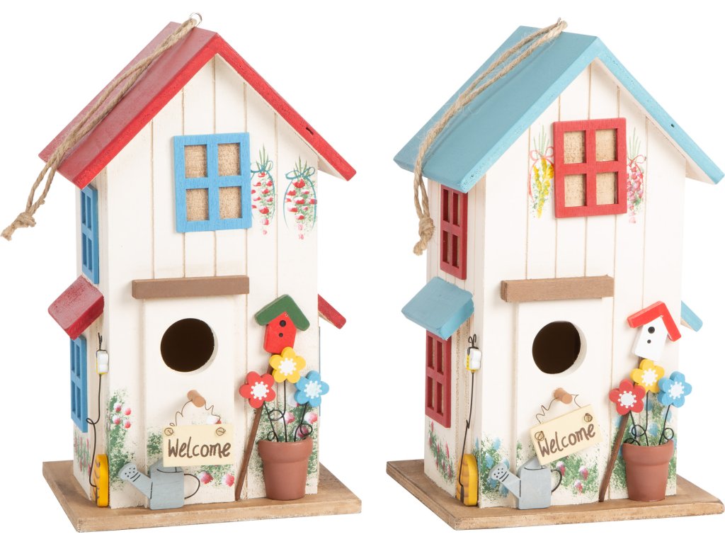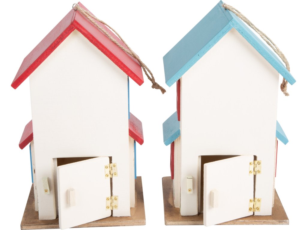 Tyto malé domečky mají mnoho detailů jako okenice, ozdoby, balkón či terasu a jsou překrásným bydlištěm pro ptáčky. V zadní části najdete otevíratelná vrátka, ze shora poutko k zavěšení. Vyrobeno z glazované překližky. Hlavní vlastnosti: možnost sledovat hnízdění ptáčkůkrásný design
