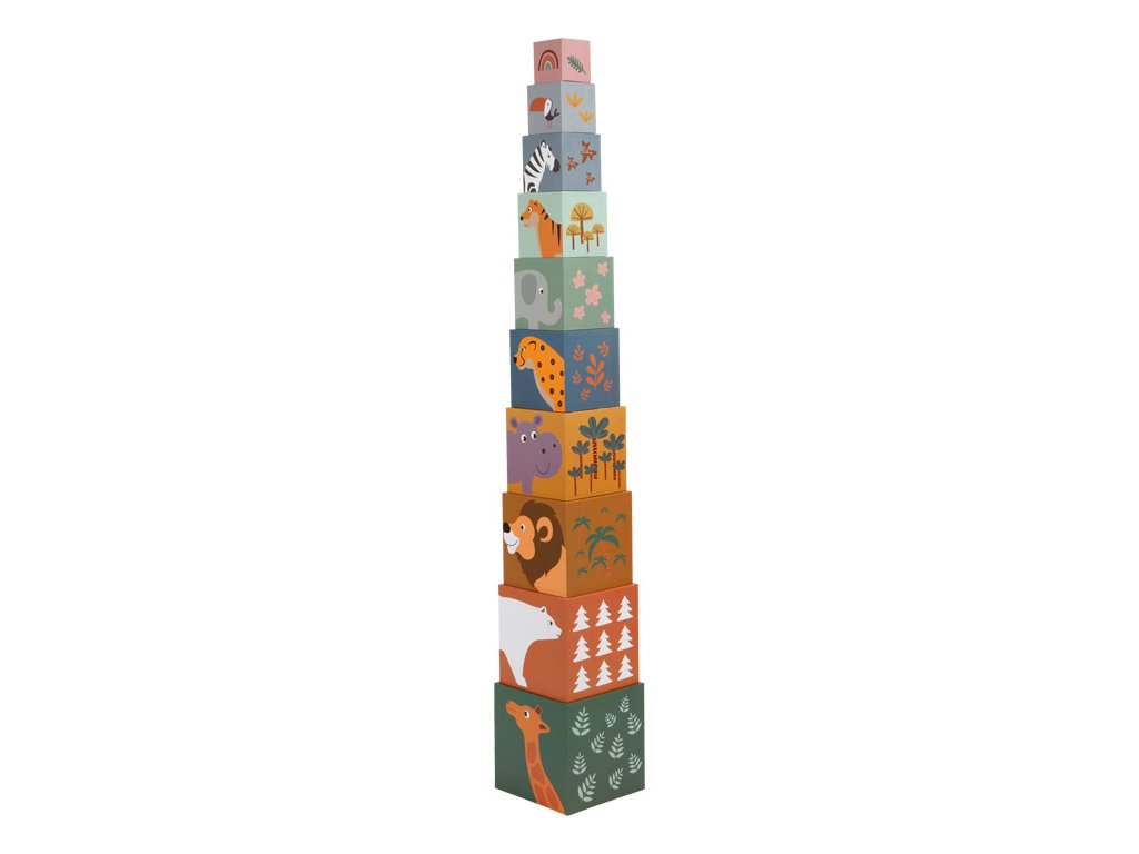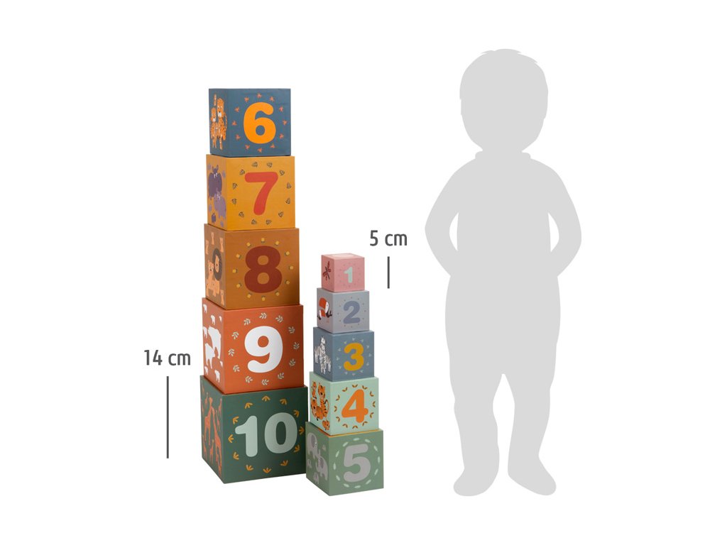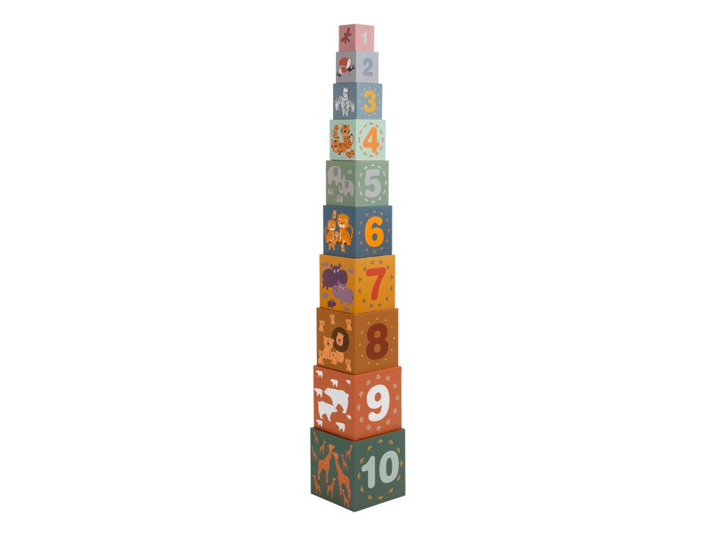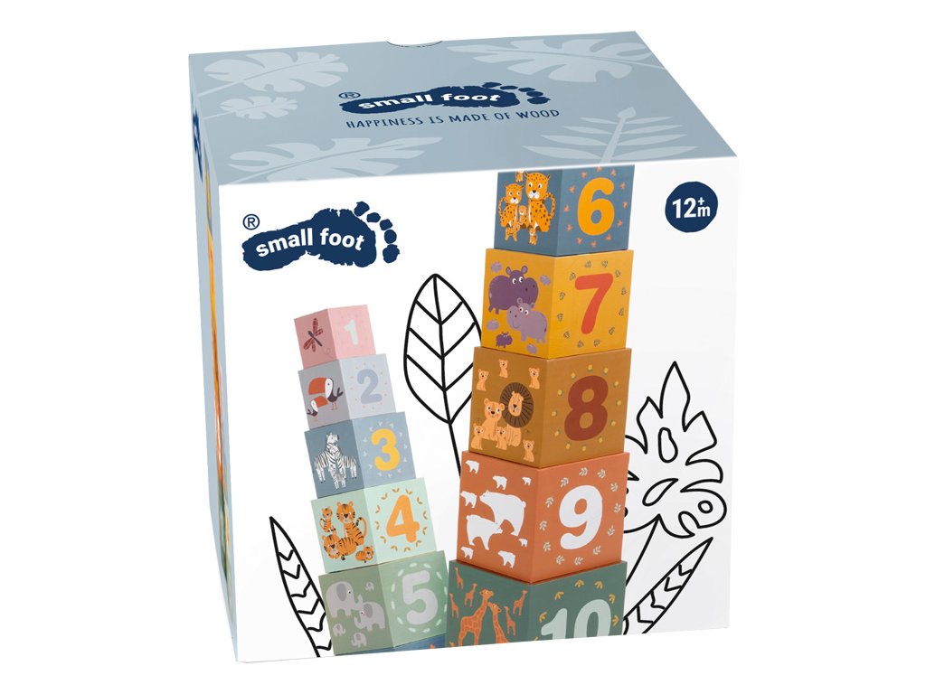 Potištěno motivy zvířecího království a číslicemi 1-10. Počet zvířat na obrázku odpovídá číslici na opačné straně kostky. První seznámení dětí se zvířaty, čísly, barvami a velikostmi. Hra děti zabaví na dlouhé hodiny. Kostky se dají naskládat jedna do druhé, šetří tak úložný prostor. Velmi kvalitní potisk, moderní barvy. Skvěle se hodí k ostatním hračkám ze série "Safari". Hlavní vlastnosti: Porozumění číslům, barvám, velikostemKostky lze uložit do sebeKvalitní potisk a moderní barvy