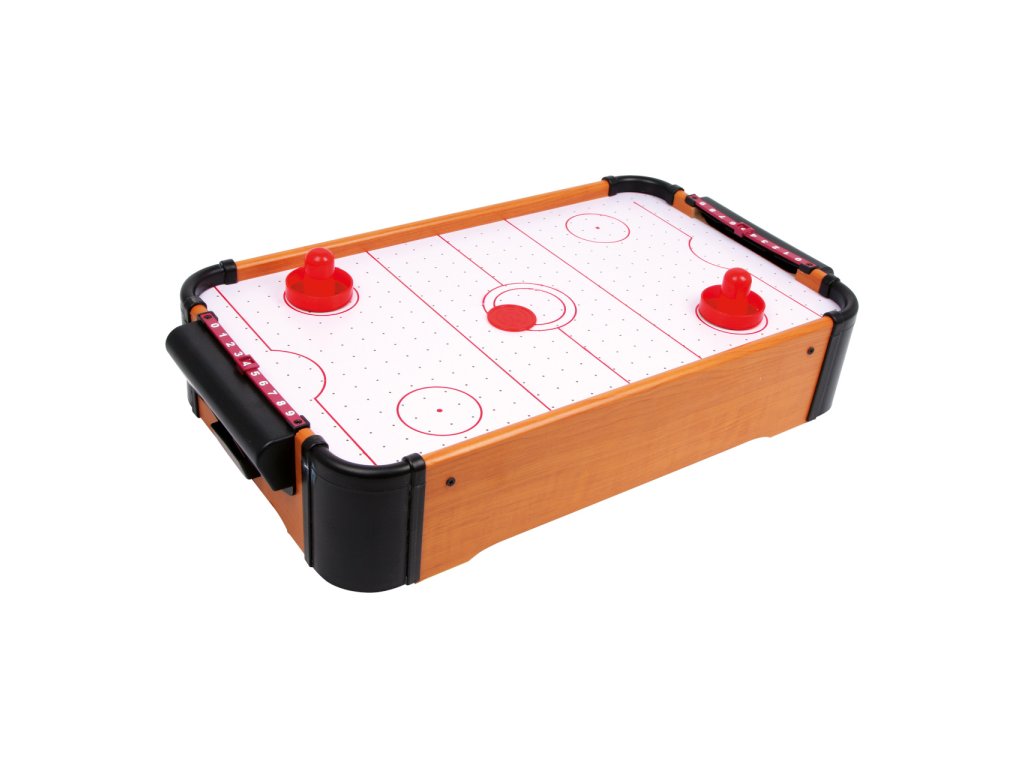 Tento vzdušný hokej je rychlá hra, kterou můžete hrát na malé ploše. Větrák je napájen osmi AA bateriemi, které puk zvednou a ten díky tomu může lítat po herní zóně rychle jako blesk. Tato hra perfektně trénuje motoriku a koordinaci ruka-oko. Stolní Air Hockey můžete postavit kamkoliv a po dohrání jej jednoduše vrátíte zpět do skříně, abyste ušetřili místo. Hlavní vlastnosti: skvělá hra pro soutěživé dvojicetrénuje motoriku a koordinaci ruka-okokompaktní rozměry