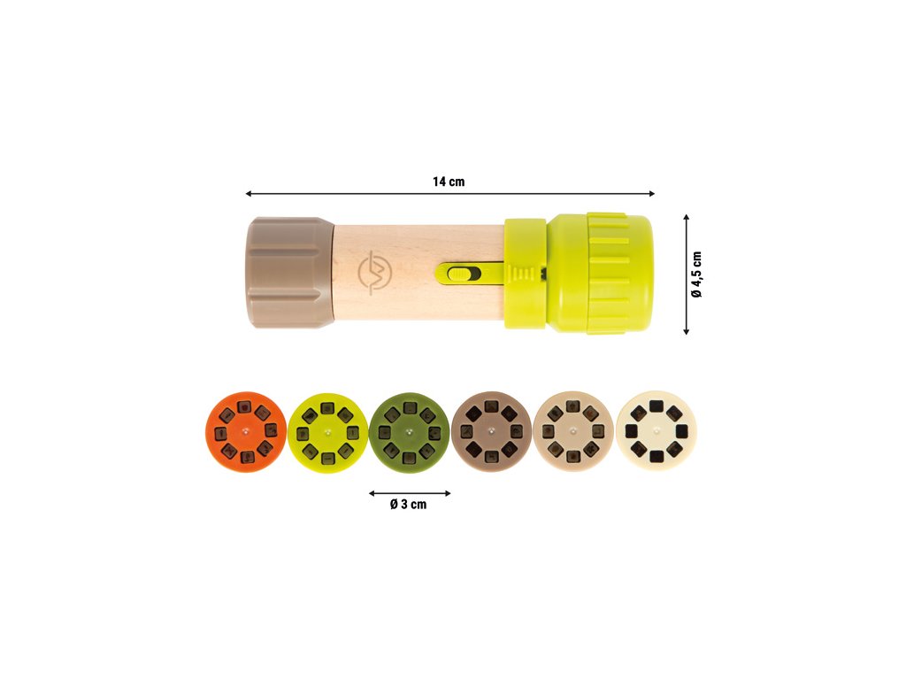 Rozsviťte svět objevů! Tato moderní objevitelská hračka 2 v 1 kombinuje funkci svítilny a obrazového projektoru. Jako svítilna poskytuje světlo ve tmě, zatímco jako projektor zobrazuje poutavý vzdělávací obsah na stěnách, stropech nebo podlahách. Dětská svítilna má ergonomický tvar, je vyrobena z robustního plastu a doplněna rukojetí z přírodního dřeva. Součástí je šest vyměnitelných obrázkových disků, které představují různá vědecká témata – například vývojový cyklus žab, motýlů a pampelišek, listy a plody stromů, zvířata a jejich stopy či souhvězdí. Ideální pro mladé přírodovědce!Díky svítilně 2 v 1 se dětská zvědavost mění v interaktivní zážitek. Děti se hravou formou vizuálně a intuitivně učí o biologii, botanice i astronomii. Vkládání a výměna obrázkových disků navíc podporuje jemnou motoriku.Snadné použití a vysoce kvalitní zpracování dělají z této objevitelské hračky nejen ideálního společníka pro poznávání přírody ve tmě, ale také skvělou volbu do dětského pokoje, na cesty nebo před spaním – zaručeně rozzáří dětem oči! Hlavní vlastnosti: svítilna a projektor 2 v 1obsahuje 6 vyměnitelných disků rukojeť z přírodního dřevarozvíjí vizuální vnímání, představivost a pozorovací schopnostibaterie 2xAAA - nejsou součástí balení