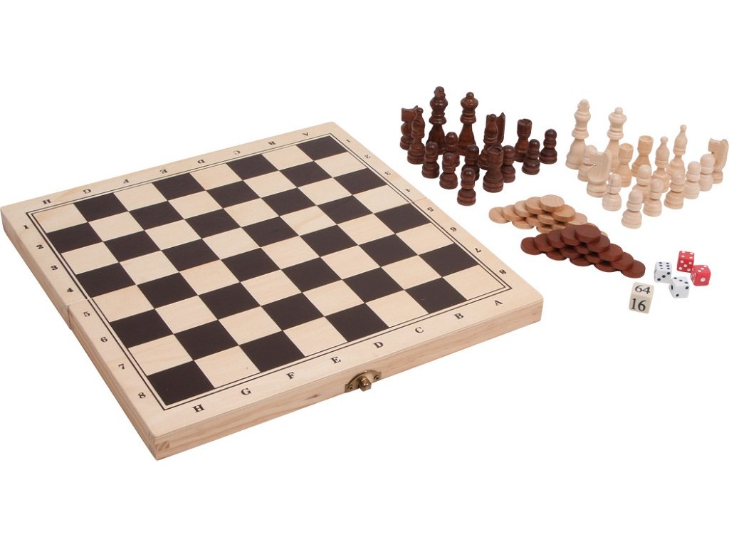 Soubor her pro celou rodinu se třemi klasickými společenskými hrami jako šachy, dáma nebo vrhcáby. Dřevěná "truhlička" zároveň slouží jako hrací deska (jak zvenčí, tak zevnitř). Perfektní řešení pro líné deštivé odpoledne! Hlavní vlastnosti: dlouhotrvající zábavarozvíjí logické myšlení a soustředěnostpro všechny věkové kategorie (nad 6 let)