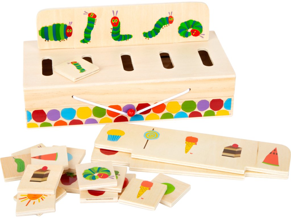 Seřaďte obrázky s různými motivy. V této šikovná, 19 dílné třídící hře ze dřeva s barevným designem budete rozpoznávat tvary a barvy. Dřevěné desky potištěné motivy se jednoduše umístí na otvor ve víku, takže je lze přiřadit k odpovídajícím motivům. Krabici lze snadno uzavřít elastickou páskou a dřevěným knoflíkem. Během cestování se tedy nic nevytratí. Hlavní vlastnosti: cestovní hravkládačka podporuje v rozpoznávání tvarů a barev19 dílků