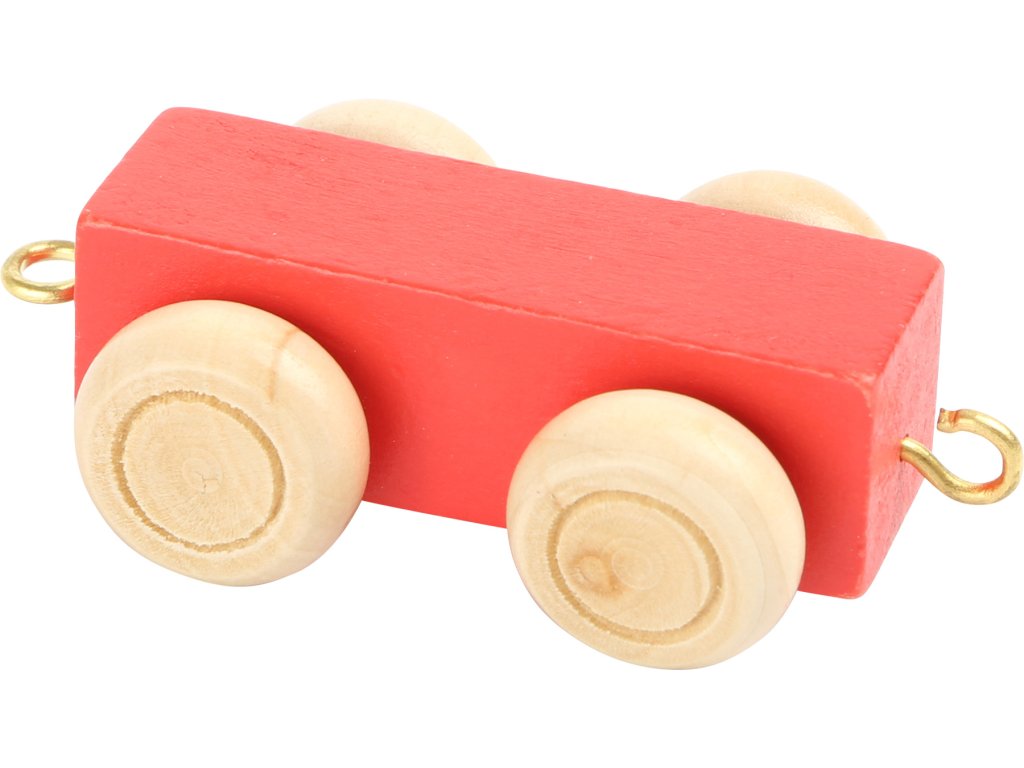 Vagónek je vhodný k vláčkodráhám jiných výrobců a lze jej například využít jako mezičlánek písmenkového vlaku. Osy koleček jsou dřevěné nebo kovové, dodáváme náhodně podle aktuální dostupnosti. Hlavní vlastnosti: kompatibilní s dřevěnými vláčkodráhami jiných výrobcůpodporuje představivost, obratnost a koordinaci