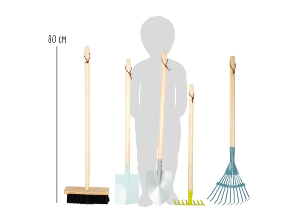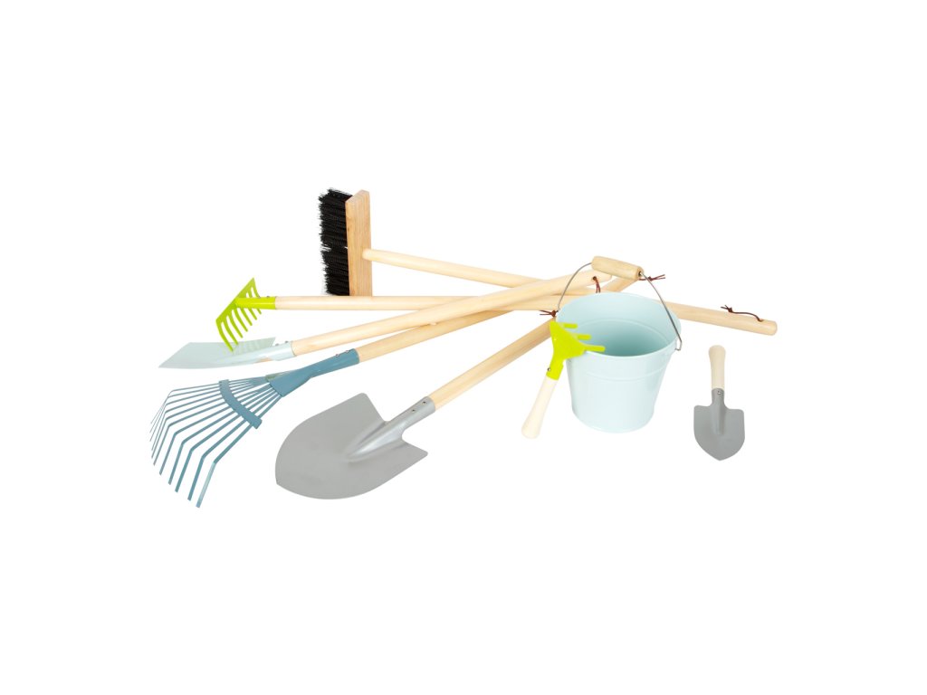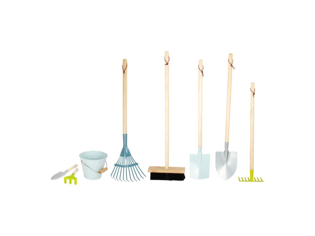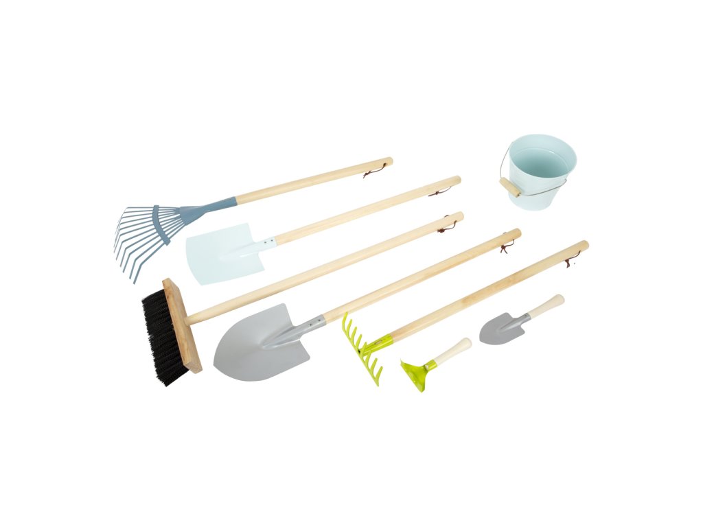Tato komplexní sada zahradního nářadí v moderních barvách se skládá z kovového kylíku, rýče, lopaty, hrábek, košťete, lopaty a dvou malých zahradnických nástrojů pro práci na zahradě. Po dokončení práce lze nástroje z robustního dřeva a kovu řádně zavěsit na praktické smyčky. Tato sada je skutečná „nutnost“ pro všechny mladé zahradní pomocníky. Oblíbená moderní, komplexní sada pro váš sortiment venkovního zahradního nářadí. Hlavní vlastnosti: 8dílná sada: kovový kyblík, rýč, lopata, 2x hrábě, koště, malý rýč a malé zahradní hráběpraktické smyčky pro zavěšení robustní provedení z kovu a dřeva, ideální pro malé rucerozvíjí motoriku, tvořivost a vztah k příroděvšestranné využití – na sázení, kopání, tvarování i přenášenívhodné na zahradu, pískoviště i pláž