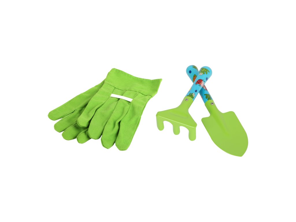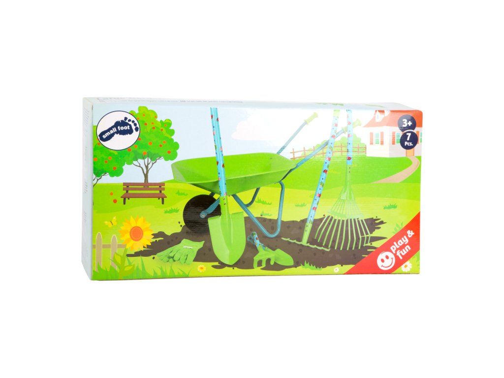 Hurá na zahradu! Mladí zahradkáři Vám rádi pomohou s touto velkou sadou zahradního nářadí. Stačí si nasadit rukavice a mohou začít motykou, hráběmi, rýčem, kolečkem a dalšími nástroji pomáhat a rozvíjet své zahradnické zkušenosti. Všechny díly jsou vyrobeny z vysoce kvalitního, jemně opracovaného kovu a díky svému dětskému designu a jarním barvám potěší každého malého zahrádkáře. Hlavní vlastnosti: součástí balení je vše dle obrázkuideální velikost pro dětirozvíjí motoriku, rovnováhu a vztah k příroděvyrobeno z kvalitních materiálů kovu a dřevakolečko má plastové kolo s pevnou bezvzduchovou gumovou pneumatikou