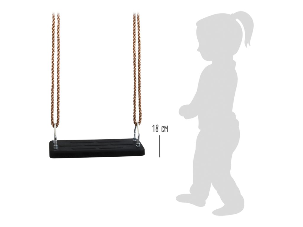 Houpejte se v létě i zimě! Mimořádně pevná a odolná houpačka je určena k celoročnímu využití na zahradě, či dětském hřišti. Sedátko je vyrobeno z tuhé gumy, poskytuje tak pevnou oporu a neklouže. Poddajná nylonová lana jsou odolná povětrnostním vlivům a zakončena kovovými kružky k zavěšení. Jejich délku lze kdykoli snadno upravit pomocí kovových průvlaků. Hlavní vlastnosti: jednoduché nastavení délkynosnost 100 kgodolné provedení
