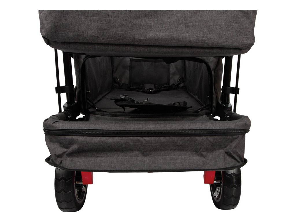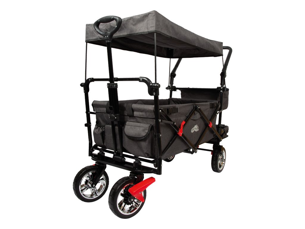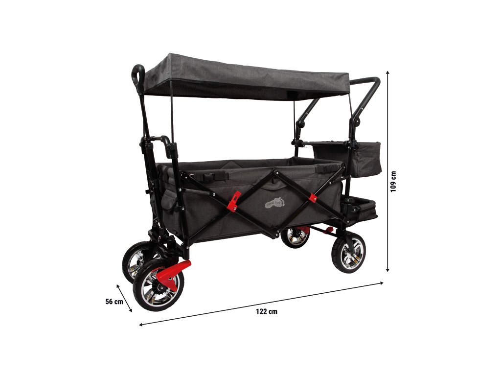 Univerzální parťák pro malá i velká dobrodružství! Tento skládací vozík je skvělým pomocníkem na každém výletě, ať už vyrážíte na rodinnou procházku, piknik do přírody, nebo třeba na výlet se psem! Zaujme promyšleným designem a chytrými detaily, které ocení každý aktivní rodič. Díky odnímatelné stříšce, pláštěnce a boční plachtě jste připraveni na každé počasí. Praktický boční otvor umožní snadné nastupování pejskovi, nebo usnadní převoz delších předmětů. Skvělý pomocník pro každodenní použití i víkendová dobrodružství! Po použití lze vozík jednoduše složit do kompaktního tvaru, ochranný obal je součástí balení. Dvě madla umožňují pohodlné tlačení i tažení, výškově nastavitelná rukojeť se přizpůsobí každému uživateli. Odnímatelná stříška chrání před sluncem a lehkým deštěm, pláštěnka poskytuje extra ochranu v nepříznivém počasí. Odolný, praktický a všestranný společník pro každou rodinu! Hlavní vlastnosti: stabilní kola s protiskluzovým vzorkem a parkovacímí brzdaminastavitelná rukojeť pro pohodlné řízeníbezpečnostní popruhvšité kapsy a extra úložný prostor