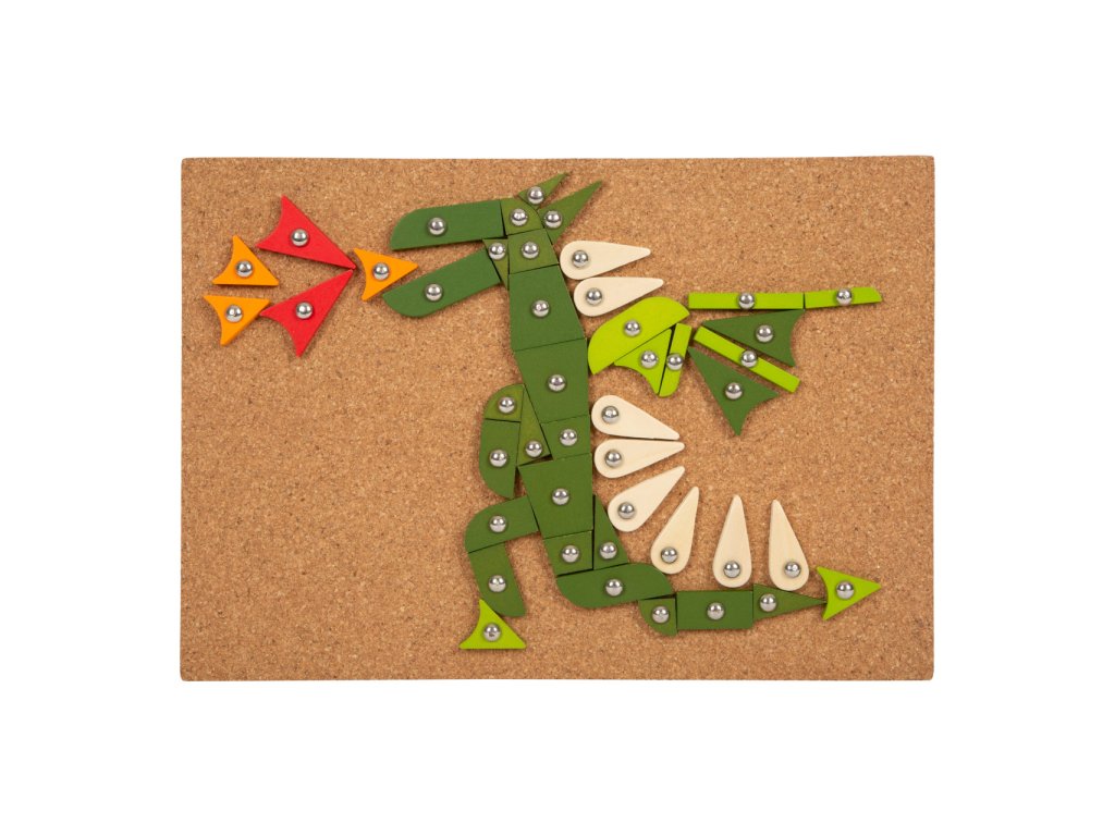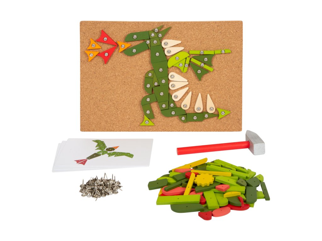 Obsáhlá kreativní hrací sada pro milovníky přírody! V balení najdete korkovou podložku, dřevěné kladivo, připínáčky a mnoho dílků z laminovaného dřeva v rozdílných tvarech a barvách. V krabici, která je vhodná i na uschování této hračky, najdete šest obrázkových předloh.Klasická zatloukací hra v moderních barvách a nesmrtelném designu, s kterou si děti mohou vytvořit obrázky rostlin, dinosaurů či čehokoliv jiného. Mohou se řídit obrázkovými předlohami nebo tvořit dle vlastní představivosti. Hračka pomáhá s rozvojem kreativity, trénuje zručnost, zlepšuje koordinaci ruka-oko a rozeznávání barev a tvarů. Zatloukací sada je vhodná pro děti malé i větší. Hlavní vlastnosti: zatloukací hra s rozsáhlým výběrem motivůdřevěné kladívko, připínáčky, korková podložkadílky různých tvarů a barevděti si procvičí motoriku a rozeznávání tvarů a barevmoderní barevné schémazlepšuje zručnost a koordinaci ruka-oko