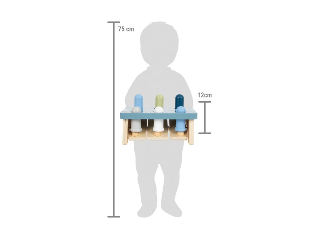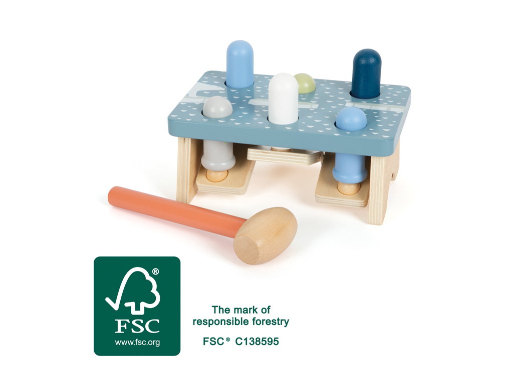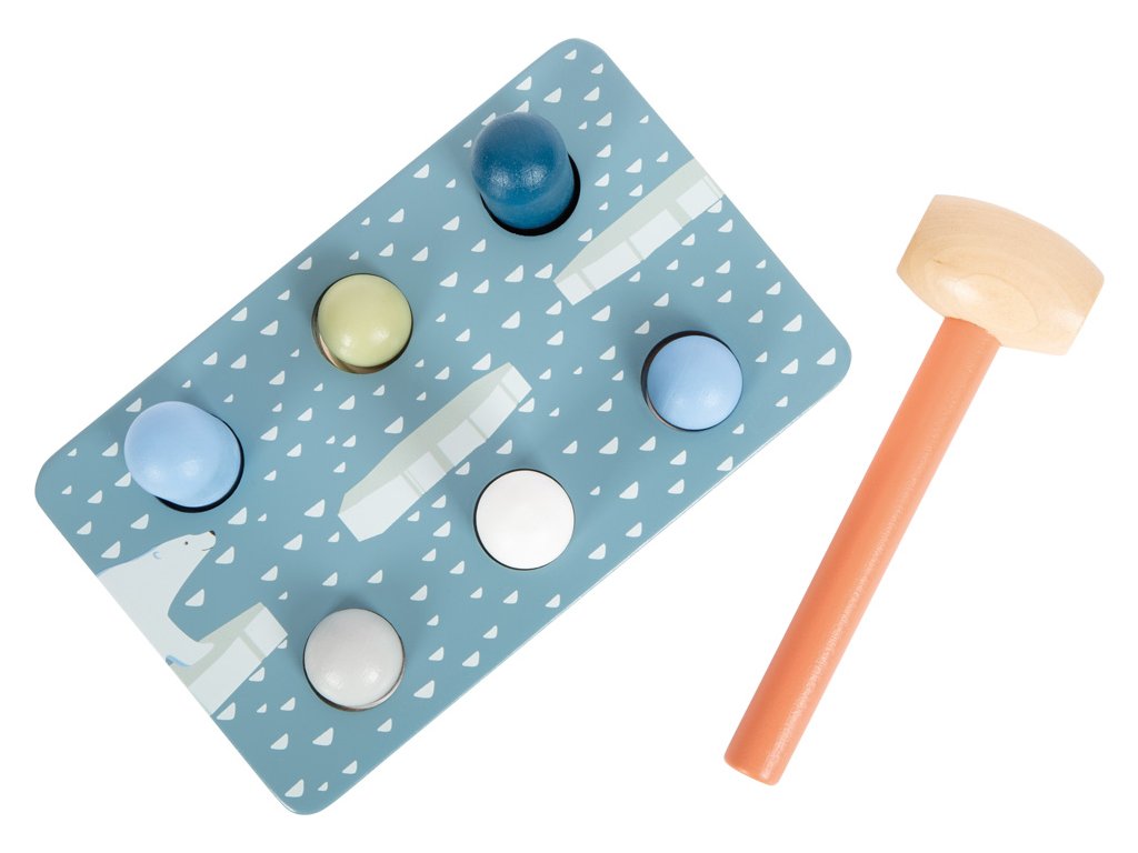 Klasická zatloukací hra je vyrobena z certifikovaného FSC® dřeva a je nejen zábavná, ale i naučná. Je součástí řady Arctic a díky barevnému provedení v bílé barvě v kombinaci s odstíny modré a zimnímu motivu na horní straně stojánku si mohou děti představit, že zatkoukáním kolíků připravují cestu z ledových ker pro ledního medvěda. Ve stojánku je umístěno 6 kolíků, které jsou důmyslně propojeny a když se zatluče kolík na jedné straně, ten na straně druhé se ze stojánku vysune nahoru. Děti při zatloukání zažijí spoustu legrace, ale také se naučí, jak funguje příčina a následek, trénují koordinaci ruka-oko a rozvíjejí motoriku. Hlavní vlastnosti: rozvíjí koordinaci ruka-okorozvíjí motoriku a obratnostrobustní a odolné provedenípodněcuje kreativní a nápaditou hrus motivem ledního medvěda vyrobeno z certifikovaného FSC® dřevasoučást řady Arctic Značka a certifikát FSC® (Forest Stewardship Council) zaručuje, že dřevo, ze kterého byl produkt vyroben, nebylo vytěženo nelegálně a pochází z lesů obhospodařovaných šetrným či přírodě blízkým způsobem, ve kterém jsou dodržovány přísné environmentální a sociální požadavky. Značka FSC® na výrobku znamená, že svým nákupem pomáháte chránit lesy a podporujete šetrné, odpovědné či přírodě blízké hospodaření, díky kterému jsou naše lesy stabilnější, zdravější, mají přirozenou druhovou skladbu a lépe odolávají negativním následkům klimatických změn.