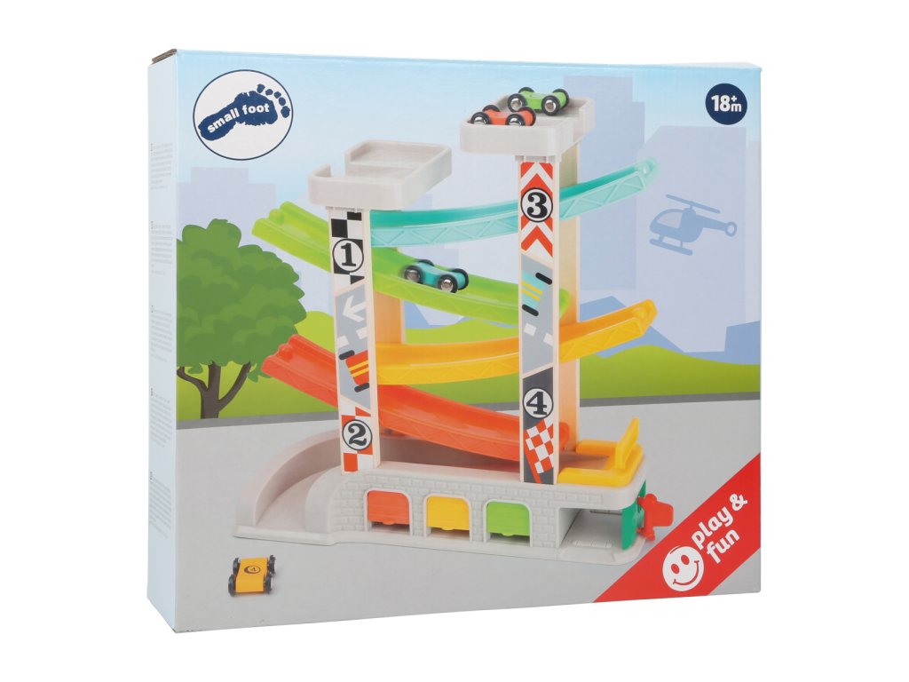 small foot Závodní dráha s parkovištěm a garážemi