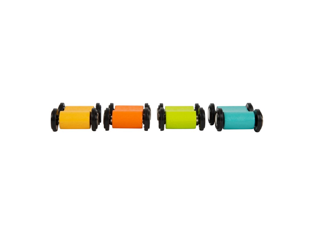 Neobvykle vysoká závodní dráha s osmi rampami a výjezdem do ulice! Na nejvyšším patře je místo pro parkování se čtyřmi barevnými dřevěnými autíčky. Klapací zvuky, které auta vydávají při sjezdu po rampě podporují akustické vnímání dětí. Dále hračka trénuje motoriku a koordinaci ruka-oko. Má širokou základnu, je tak velmi stabilní, je vyrobena z přírodního neošetřeného dřeva a pevného plastu. Pestrobarevný design vhodný pro děti. Hlavní vlastnosti: Dřevo, plastTrénuje motoriku a koordinaci ruka-okoV balení 4 dřevěná autíčka