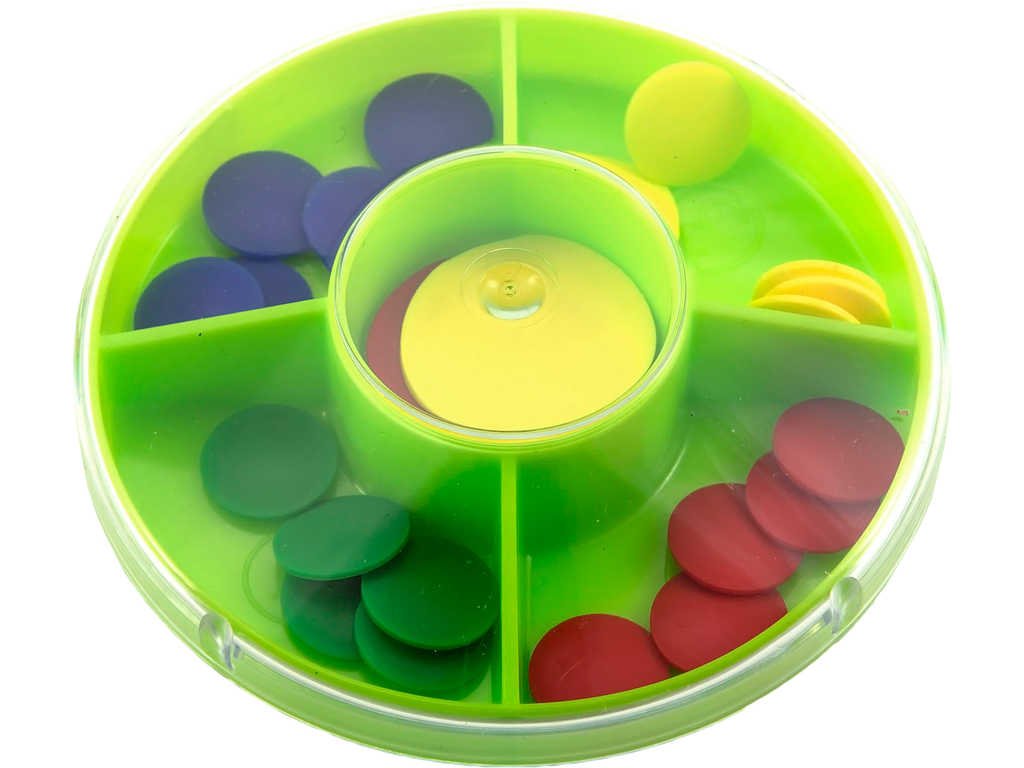 Obsahuje 4 sady koleček - vždy pět malých a 1 velké. Úkolem zůstává přimět malé blechy, aby pomocí velké naskákaly do krabičky. Vše vyrobeno z barevného plastu.