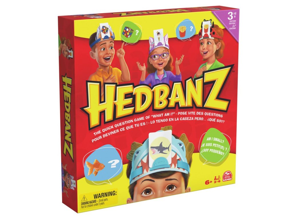 Rychlá hádací hra „Co jsem?“ je zpátky v druhém vydání! Hedbanz od Spin Master Games je zábava pro celou rodinu! V této nové hře je 6 nových čelenek: dinosaurus, narval, robot, květina, motýl a mozek. Také tu jsou zbrusu nové ilustrace na kartách jako například „Jsem sluneční brýle“ nebo „Jsem had“. Pokládejte kreativní otázky typu „Jsem pizza?“ nebo „Jsem pes?“, abyste zjistili, co je na vaší kartě z kategorie zvíře, věc nebo jídlo. Hra Hedbanz je jednoduchá: stačí vzít kartu, umístit ji a hrát! Vyberte si jednu čelenku a vezměte kartičku s obrázkem, aniž byste se na ni dívali. Nasaďte si čelenku a zasuňte kartu do čelenky tak, aby obrázek mířil k ostatním hráčům. Hra se hraje pomocí otázek s odpověďmi „ano“ a „ne“; vaším cílem je uhodnout, co máte na kartě. Staňte se prvním hráčem, který nasbírá tři odznáčky, a vyhráváte! Hedbanz je nezbytným doplňkem vaší sbírky deskových her pro děti ve věku 8–12 let, ale pobaví každého od 6 let výš. Je vhodná pro 2–6 hráčů a poslouží vždy, když budete potřebovat hračky pro dívky ve věku 6–8 let, rodinné deskové hry nebo hry pro děti. Hedbanz je společenská aktivita pro celou rodinu, která pobaví všechny generace. Je to klasická hra s hádáním obrázků, která je známá už roky! Ať už hledáte deskové hry pro děti ve věku 6–8 let nebo zábavné hry, tato nová edice Hedbanz plná nových barevných karet a roztomilých čelenek vás určitě pobaví. Díky jednoduchým pravidlům je hra srozumitelná pro všechny. Začněte hádat s druhým vydáním Hedbanz! Spin Master přináší dětem zábavu v podobě hraček a her včetně hraček pro batolata, hraček pro dívky a deskových her. Sbírejte své oblíbené plyšáky, antistresové hračky, auta na dálkové ovládání, akční figurky, panenky a příslušenství a mnoho dalšího. V našem katalogu najdete ideální dárek ke každým narozeninám, od speciálních dárků pro děti a batolata až po dárky pro ty, kteří zůstávají mladí duchem. Pokud chcete ještě víc, podívejte se na vzdělávací hračky pro děti, hračky do bazénu, venkovní hry a monster trucky vhodné pro každé roční období. Buďte kreativní s výtvarnými sadami, stavebnicovými hračkami a autíčky na dálkové ovládání nebo skládejte skládačky pro dospělé a hrajte karetní hry. Roztočte to na pískovišti ještě dnes se Spin Masterem!