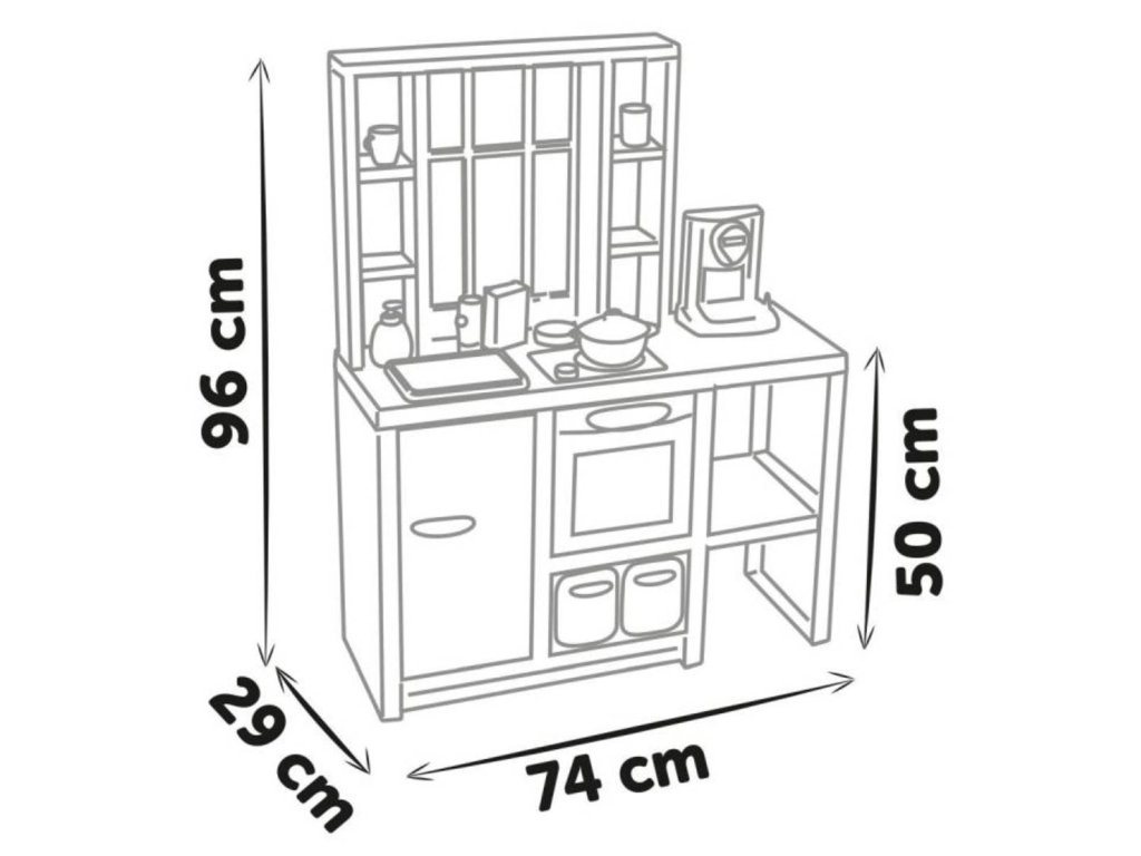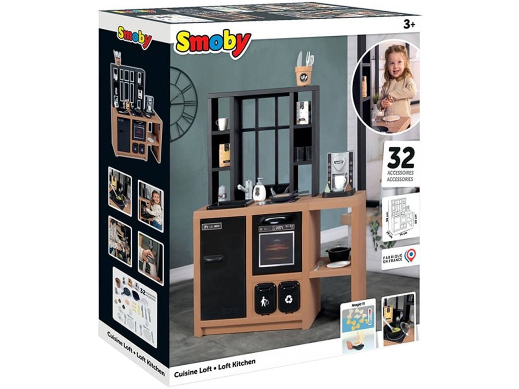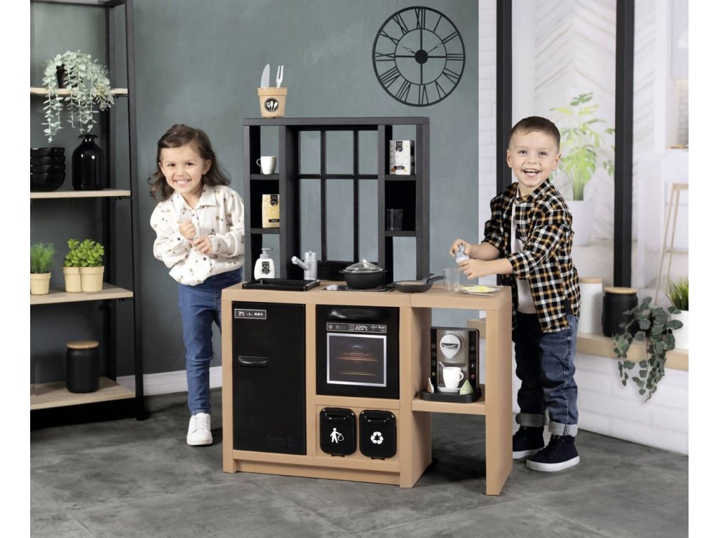 Kuchyňka Smoby Loft je pro děti, které rády vaří, jako stvořená! Díky svému neobvyklému industriálnímu vzhledu, čistým liniím a módním barvám je tato kuchyňka ozdobou každé domácnosti. Kuchyňka nabízí velkorysé hrací plochy, takže si v ní může hrát několik dětí společně, ale díky svým současně kompaktním rozměrům nezabírá příliš mnoho místa. Je vybavena vším, co tvoří skutečnou kuchyň - takže i ti nejmenší mohou vařit jako dospělí. Součástí rozsáhlého vybavení kuchyně je varná deska, trouba, lednice, kávovar, dřez a nádoby na třídění odpadu a velké množství praktických doplňků.