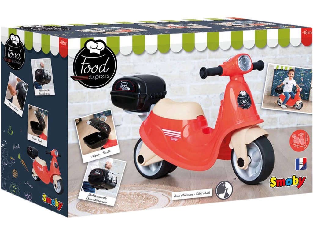 SMOBY Odrážedlo retro skútr Food Express rozvoz jídla dětské vozítko