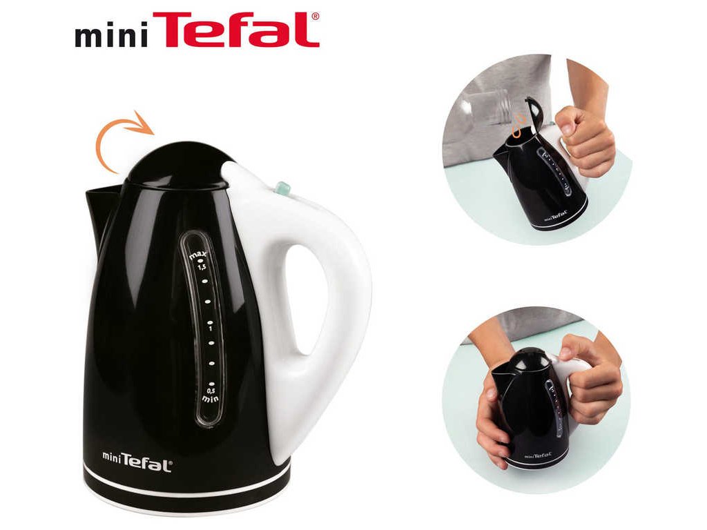 Věrná replika rychlovarné konvice mini Tefal "Express" jako doplněk pro kuchyňky od Smoby, pro všechny malé maminky a pomocnice v domácnosti. Víko lze otevřít. Mechanická funkce: po