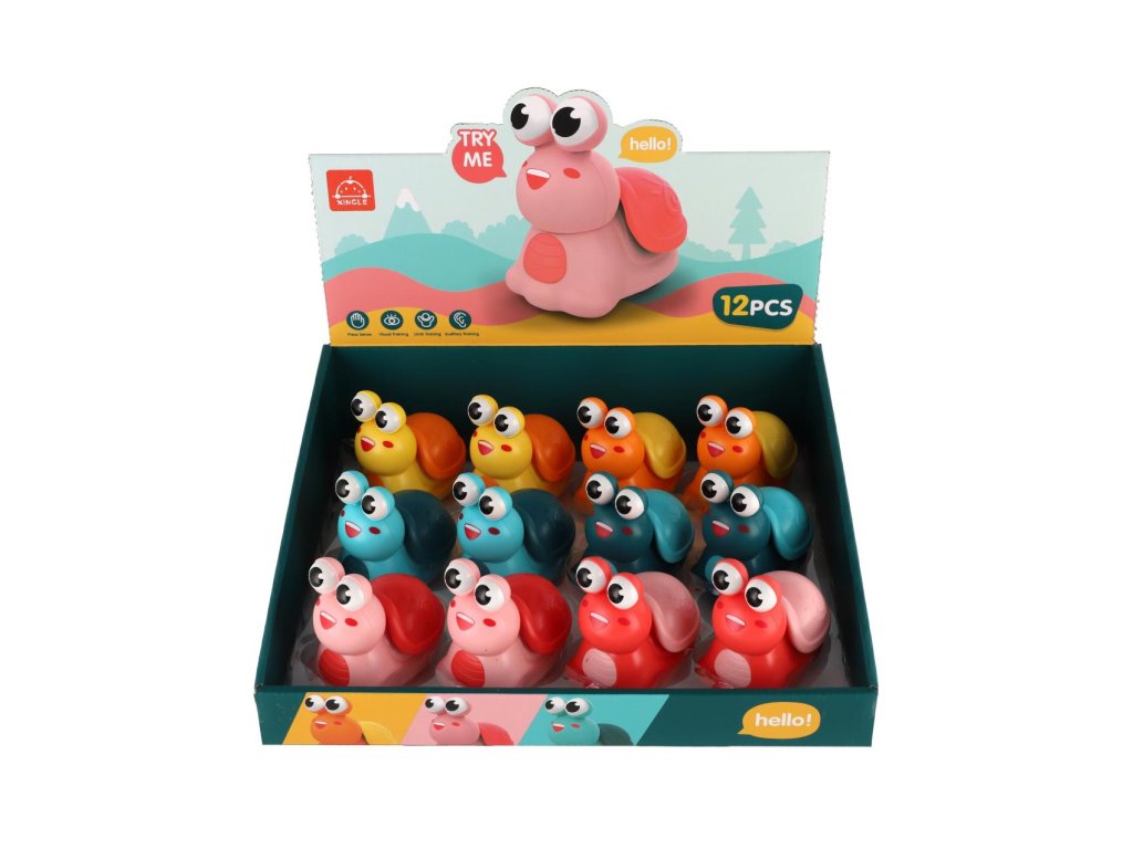 Šnek Zmáčkni a jeď plast 8cm na setrvačník 3 barvy 12 ks v boxu