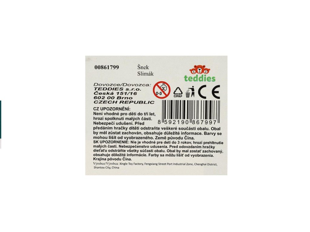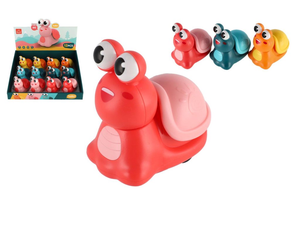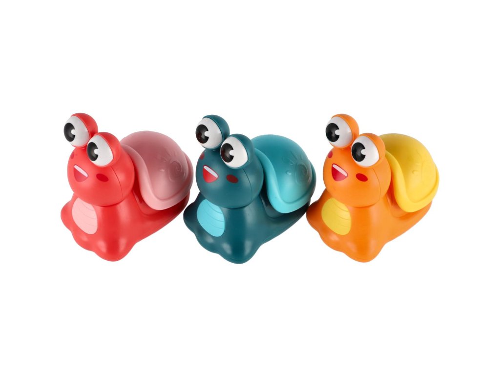 Šnek, kterýmu stačí stisknout ulitu a začne před tebou ujíždět. Šnek je velikosti 8 cm a je na setrvačník. Vybrat si můžete ze 3 barev.