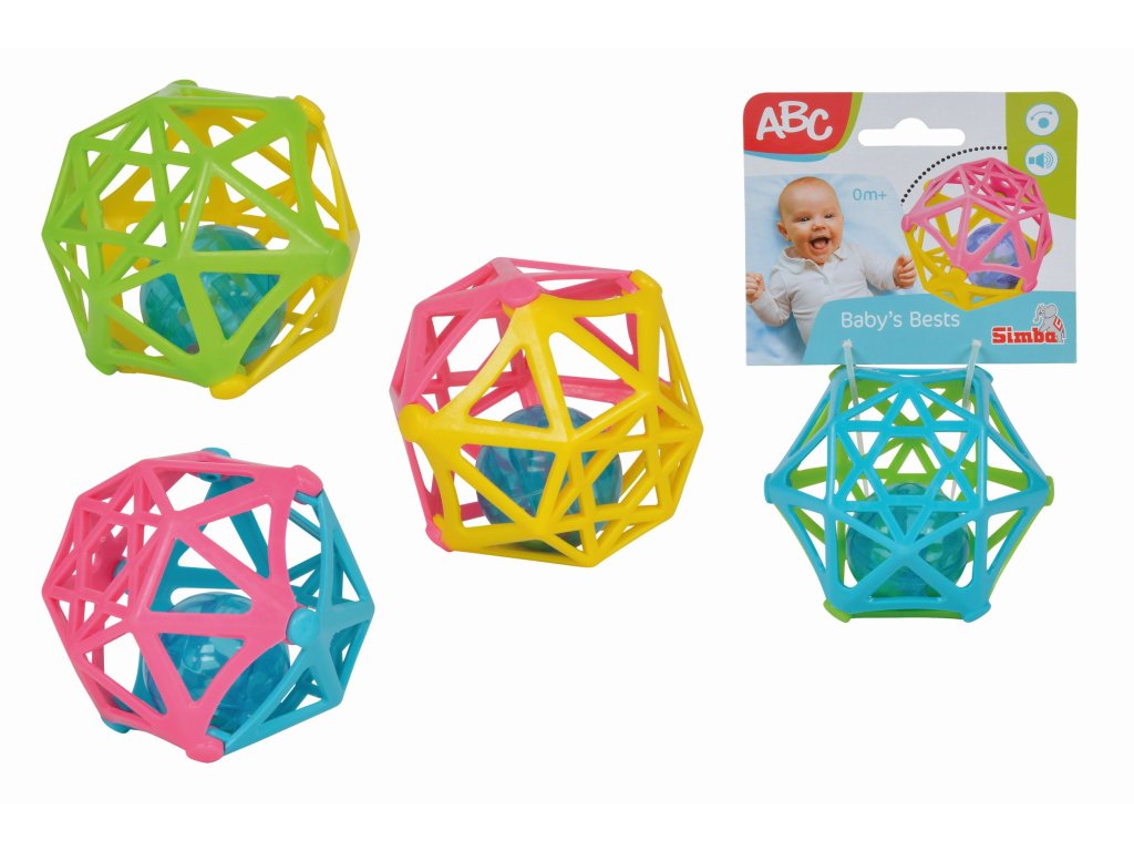 Měkká koule uvnitř s chrastítkem. 4 barevné kombinace.