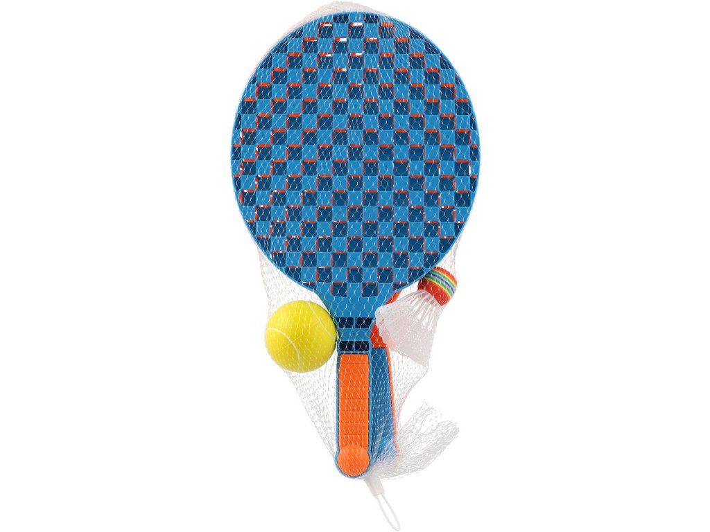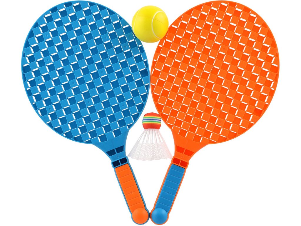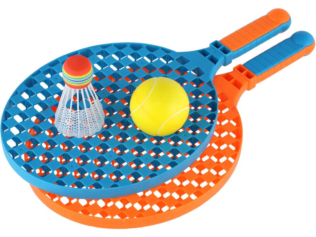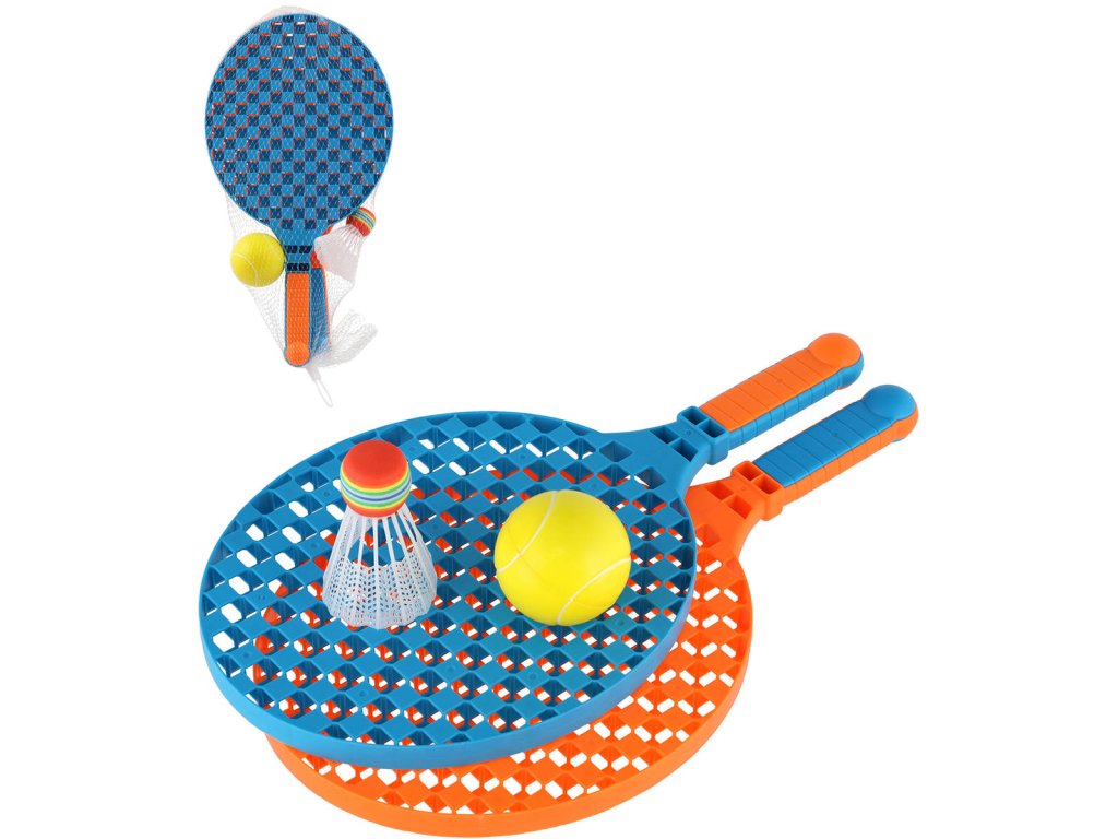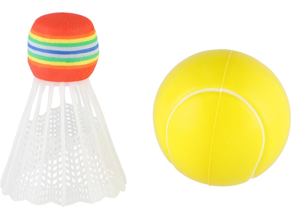 Soft líný tenis / badminton set 2 barevné pálky s míčkem a košíčkem 2v1