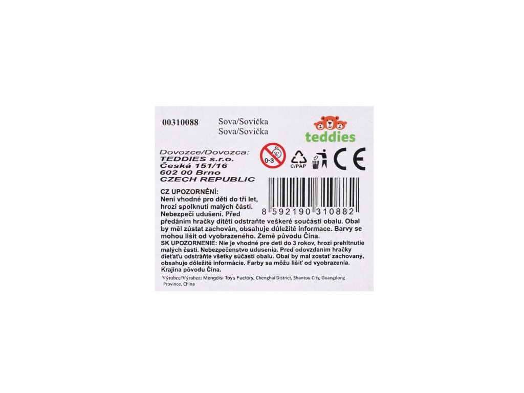 Sova/Sovička na natažení plast 6x10cm 3 barvy 16ks v boxu