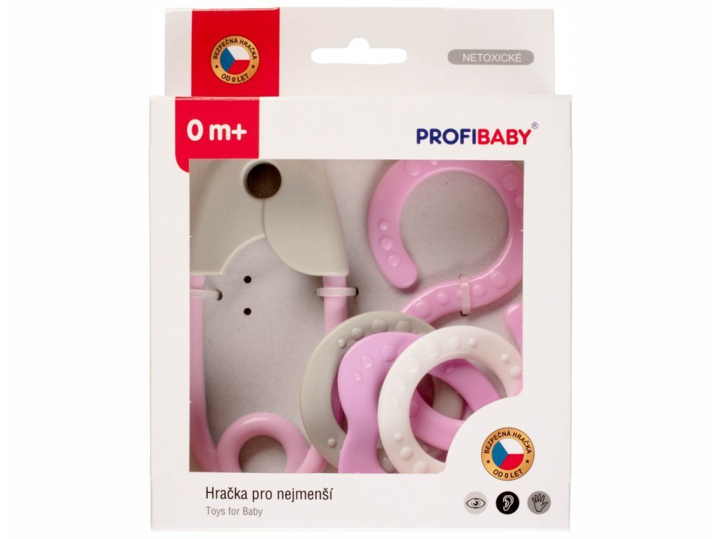 Špendlík + osmička v krabičce. Velikost špendlíku 12 cm. Chrastící plastový set v pastelových barvách, pro nejmenší děti, obsahující tvary v podobě osmičky, kancelářské sponky a srdíčka. Stimuluje smysly sluchu, zraku i hmatu dítěte a zároveň se cvičí uchopovací reflex. Chrastítka splňují náročné hygienické normy, jsou bez ostrých hran a bez uvolnitelných malých částí. 7 barevných variant - červená, mentolová, modrá, růžová, zelená, šedá, bílá.