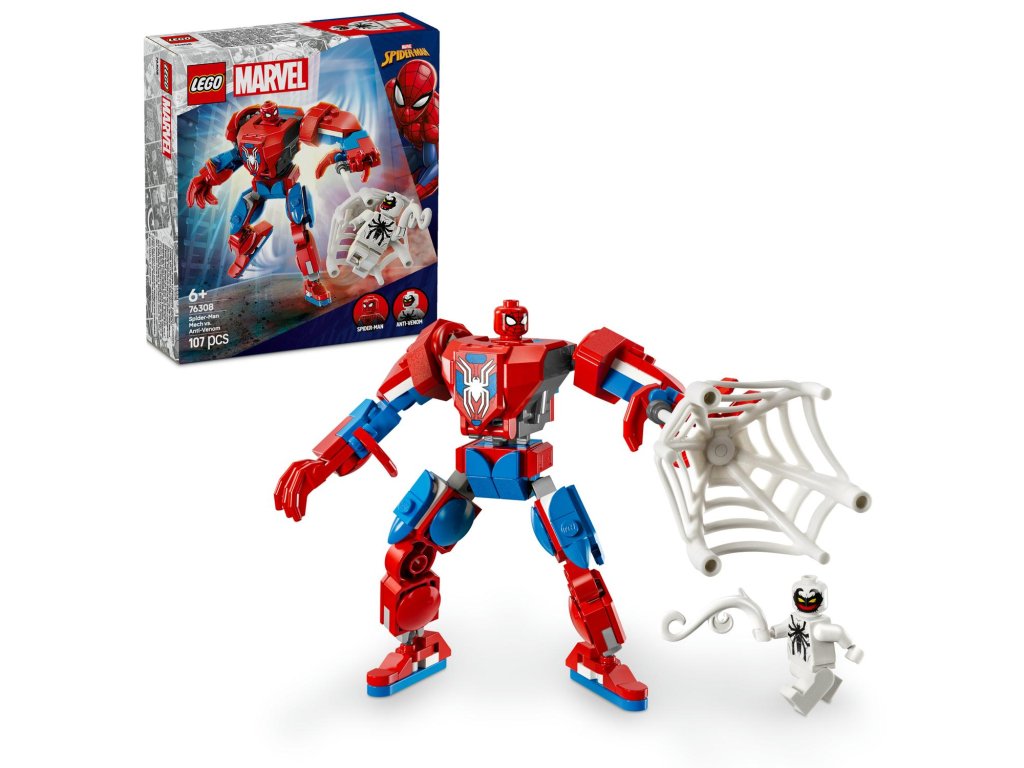 Stavebnice Spider-Man v robotickém obleku vs. Anti-Venom (76308) je ideální superhrdinská sada LEGO® pro děti, které milují robotické obleky, minifigurky a akční filmy od studia Marvel. S touto prémiovou stavebnicí LEGO Marvel s pohyblivou sestavitelnou figurkou Spider-Mana si malí superhrdinové od 6 let užijí nekonečná nápaditá dobrodružství. Tato stavebnice od LEGO Marvel obsahuje 2 minifigurky: Spider-Mana a Anti-Venoma s chapadlovitýma rukama. Sestavitelný robotický oblek má pohyblivé ruce, nohy a prsty. Děti otevřou trup robota a dostanou se do kokpitu, kam lze umístit minifigurku Spider-Mana. Stavebnice obsahuje velkou pružnou pavučinu, ve které lze uvěznit minifigurku Anti-Venoma a která se vejde do rukou minifigurky i robotickéhoobleku. přibližovat a otáčet modely ve 3D a sledovat svůj pokrok pomocí zábavné a intuitivní aplikace LEGO Builder pro ještě větší porci digitální zábavy.