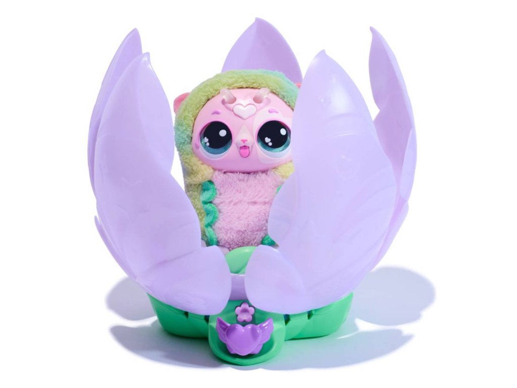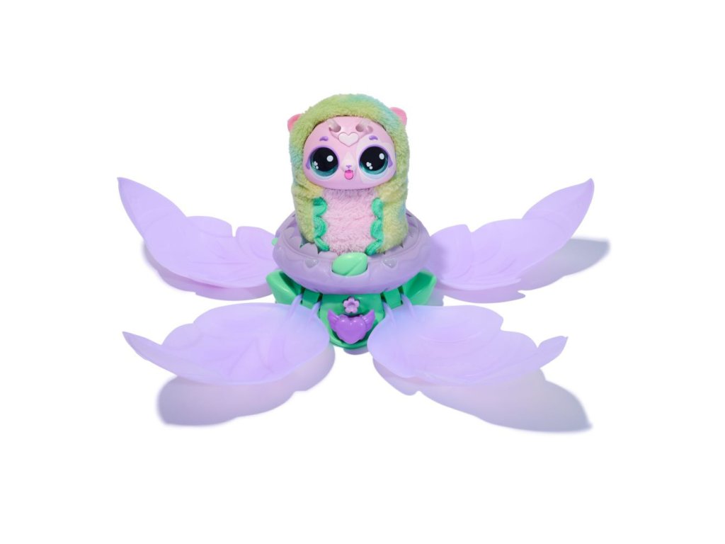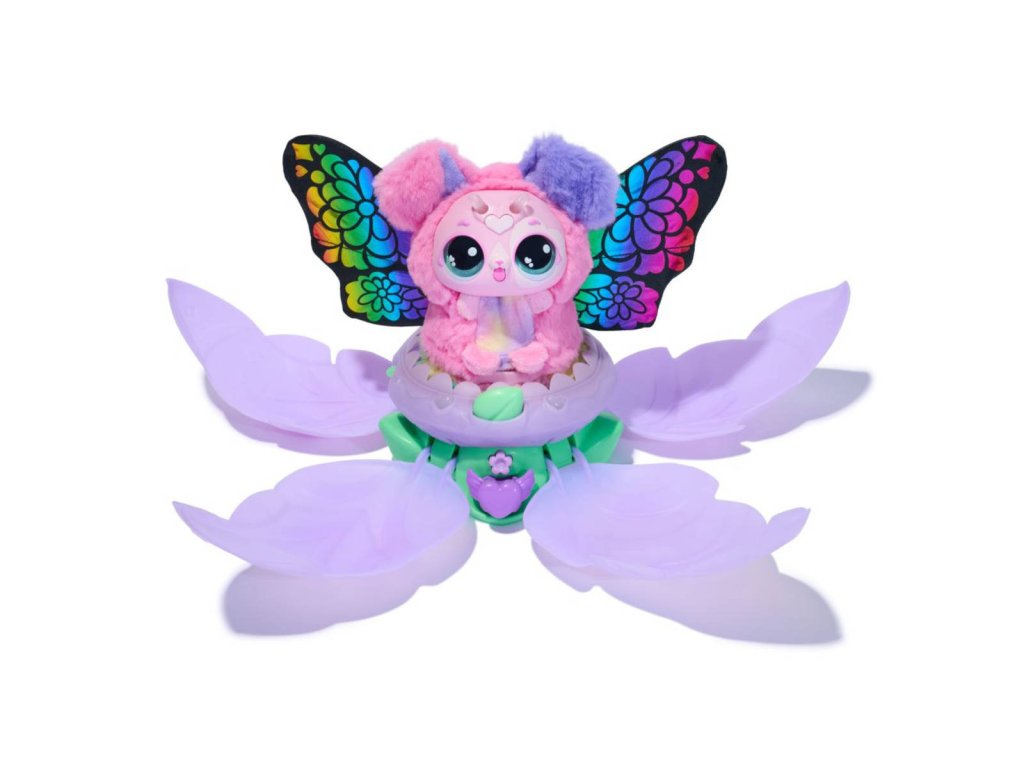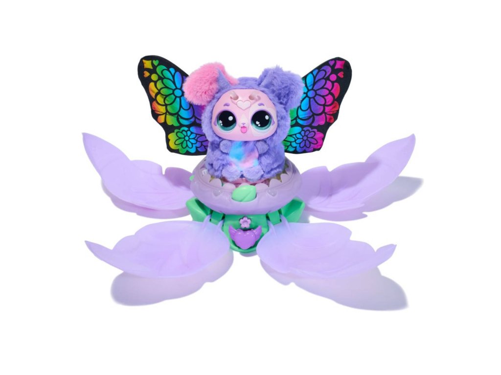 Vraťte ji do květu, který se sám zavře, aby po chvilce vydal krásného plyšového motýla ve zcela jiné barvě, než byla housenka. Motýl je interativní a dá se s ním hrát několik her. Tato proměna se dá opakovat znovu a znovu.