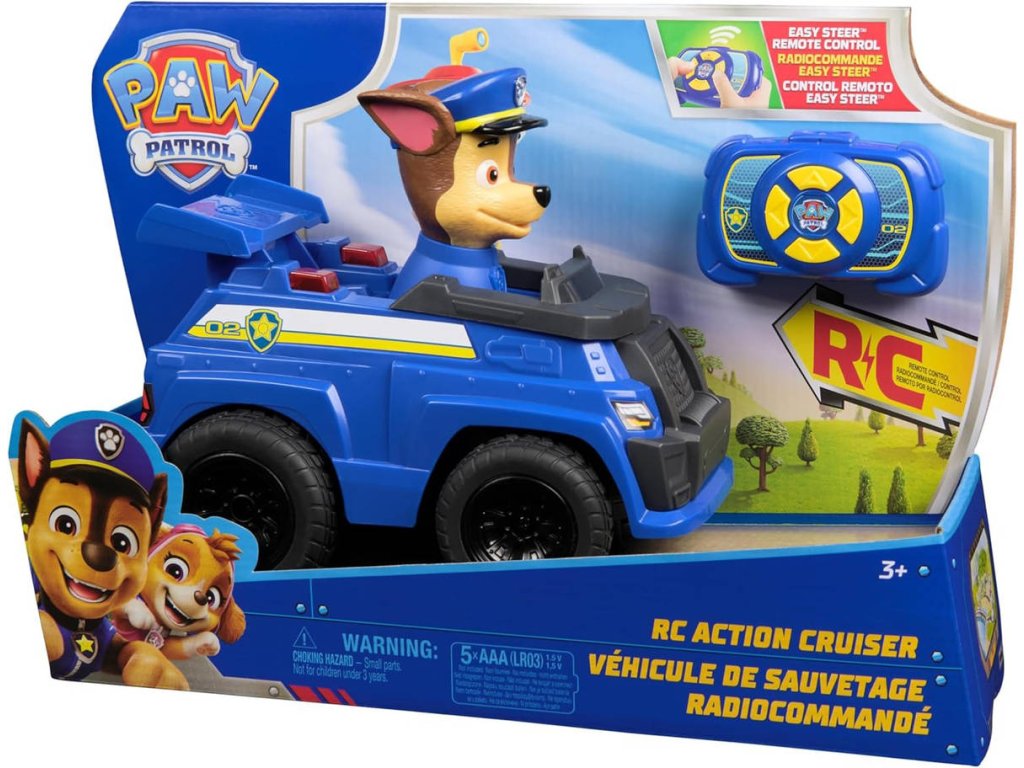Policejní auto Chase na dálkové ovládání - nyní ještě větší: vozidlo je cca 25cm dlouhé a má skvělé světelné efekty. S tímto autem s Chasem v sedadle řidiče si mohou malí fanoušci Paw Patrol doma přehrávat svá oblíbená dobrodružství.