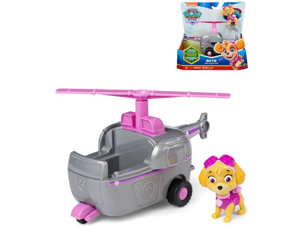 Tlapková patrola vyráží do akce ve svých záchranných vozidlech! Přidejte se ke Skye na akčních misích s jejím vrtulníkem! Když dojde k potížím, umístěte Skye (včetně figurky) na sedadlo řidiče a vyrazte na pomoc s opravdovým funkčním podvozkem a otáčejícími se vrtulemi! S autentickými detaily a realistickými prvky, milovaná létající expertka Tlapkové patroly a její vrtulník přináší úžasnou Tlapkovou patrolu k životu. Skye a její vozidlo jsou ekologicky vyrobené a jsou minimálně z 65 % z recyklovaného plastu! Spojte se s ostatními tlapkami a jejich záchrannými vozidly (prodávána jednotlivě) a pomozte zachránit den v Adventure Bay! Užijte si nekonečné Tlapkózní dobrodružství se svým oblíbeným štěněcím hrdinou v jejich charakteristickém vozidle!