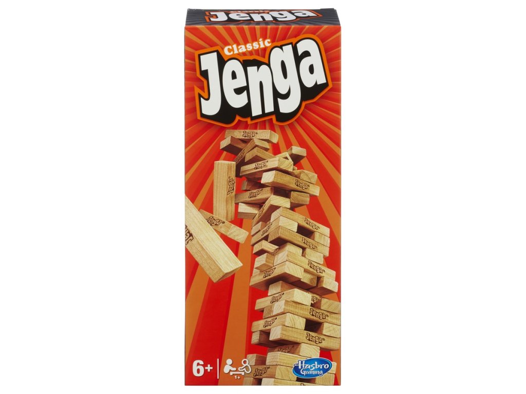 Postav ze všech kvádrů Jenga věž. Potom jednou rukou postupně vytahuj kvádry a umisťuj je nahoru, abys věž ještě zvýšil. Je tvá ruka dostatečně pevná, abys celou věž neshodil? Obsahuje 54 kvádrů Jenga z tvrdého dřeva a pomůcku na stavění.