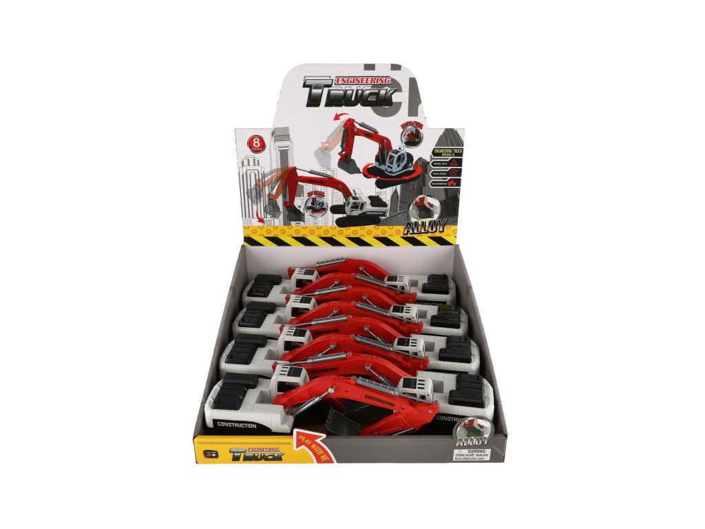 Stavební stroj bagr pásový plast/kov 8x26cm na volný chod 8ks v boxu