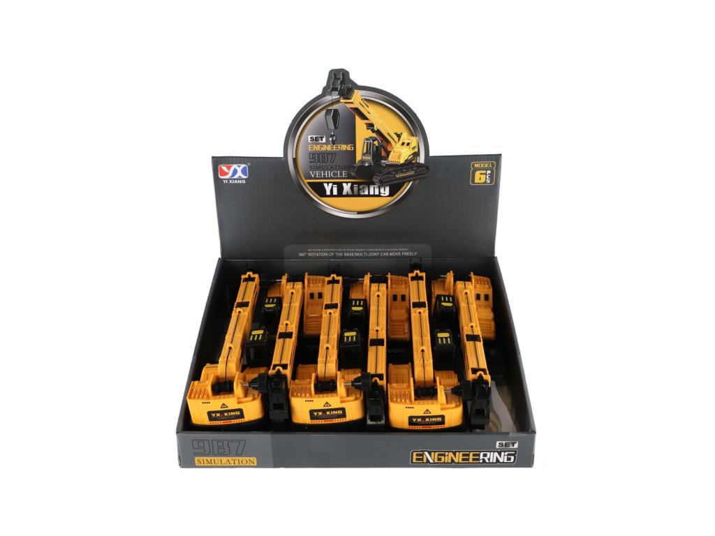 Stavební stroj jeřáb pásový plast/kov 8x26cm na setrvačník 6ks v boxu