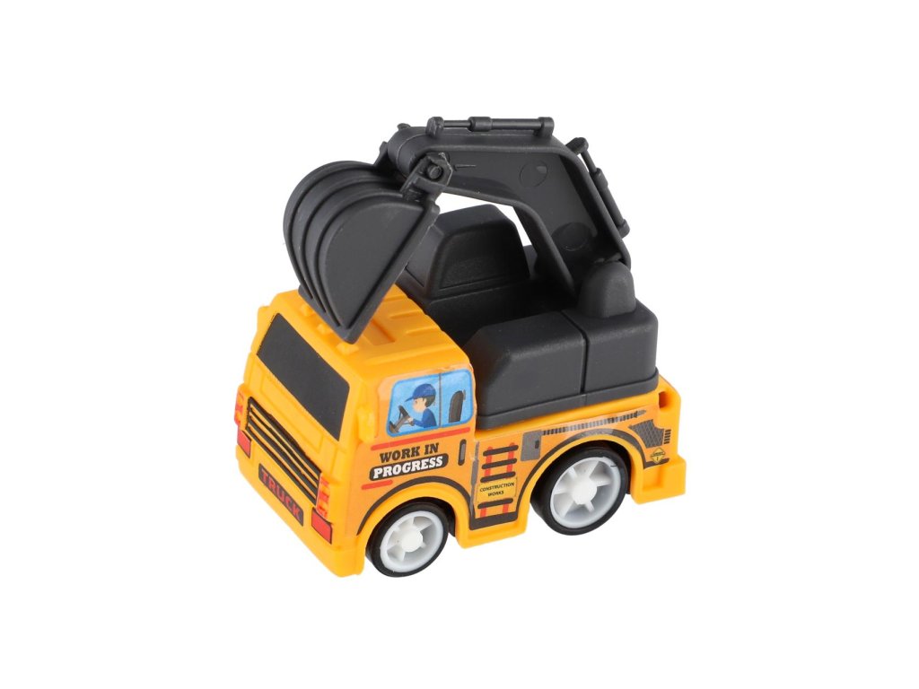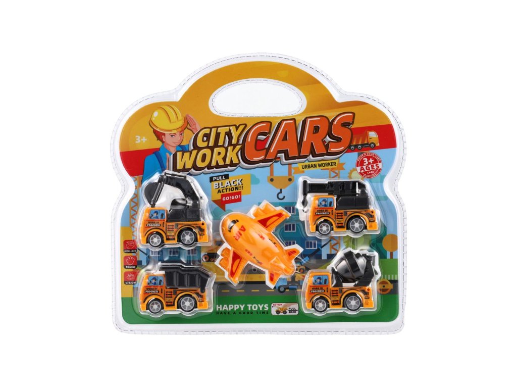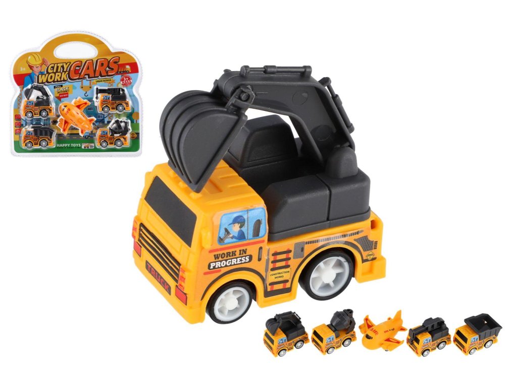 Stavební stroj mini 4ks+letadlo plast 5-7cm na zpětné natažení v blistru 23x22cm