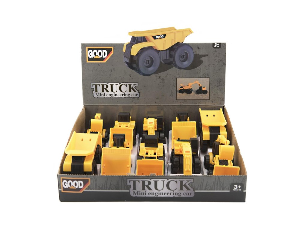 Stavební stroje plast 12-14cm mix druhů 10ks v boxu
