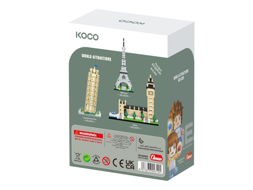 Stavebnice mini KOCO Eiffelova věž plast 538ks v krabičce 13x16,5x7cm