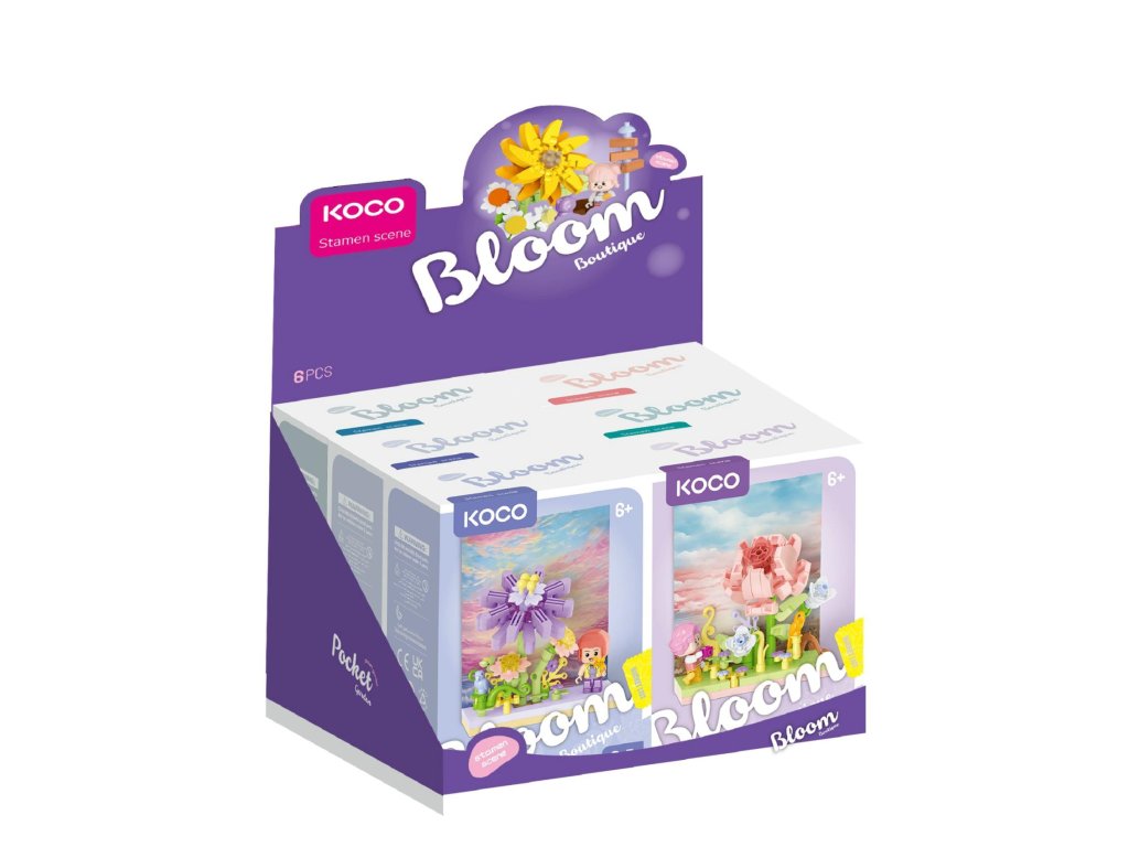 Stavebnice mini KOCO Květinová scenérie plast 6 druhů v krabičce 10x14x6cm 6ks v boxu