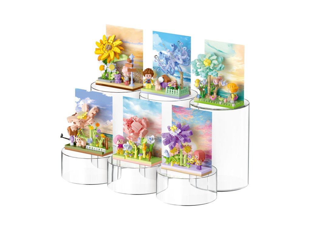 Přeneste se do rozkvetlé zahrádky s mini stavebnicí KOCO! Každé balení této květinové scenérie obsahuje plastové dílky k sestavení malebné kompozice – květinové záhony, zelené listy, kamínky, dekorace a další detaily. V nabídce je 6 různých druhů, které lze mezi sebou kombinovat a rozšiřovat tak svou mini zahrádku. Ideální jako kreativní dekorace, dárek nebo sběratelský kousek pro malé i velké milovníky tvoření.