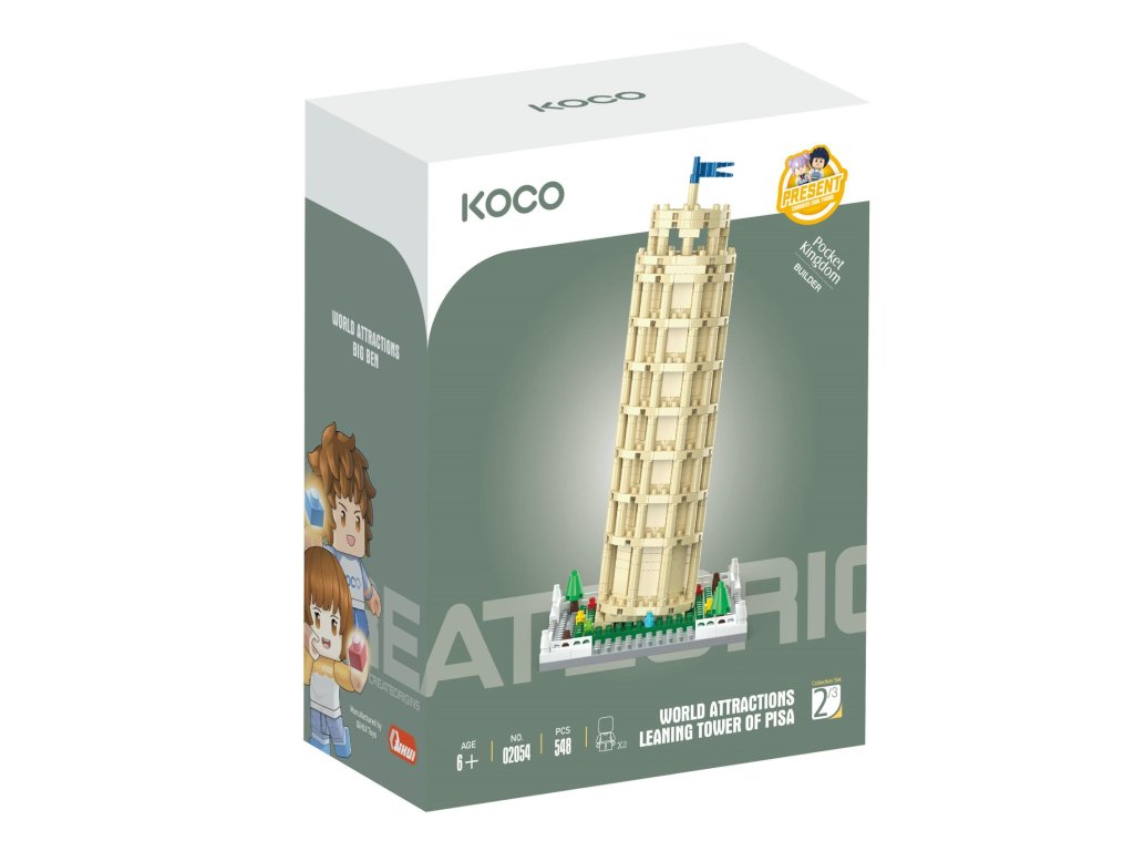 Postavte si slavnou Šikmou věž v Pise, jednu z nejznámějších památek Itálie, přímo u vás doma. Stavebnice KOCO nabízí detailní miniaturu unikátní stavby, která svou šikmou konstrukcí fascinuje celý svět. Z 548 plastových dílků sestavíte model, jenž bude ozdobou vaší sbírky a originálním kouskem na výstavku.