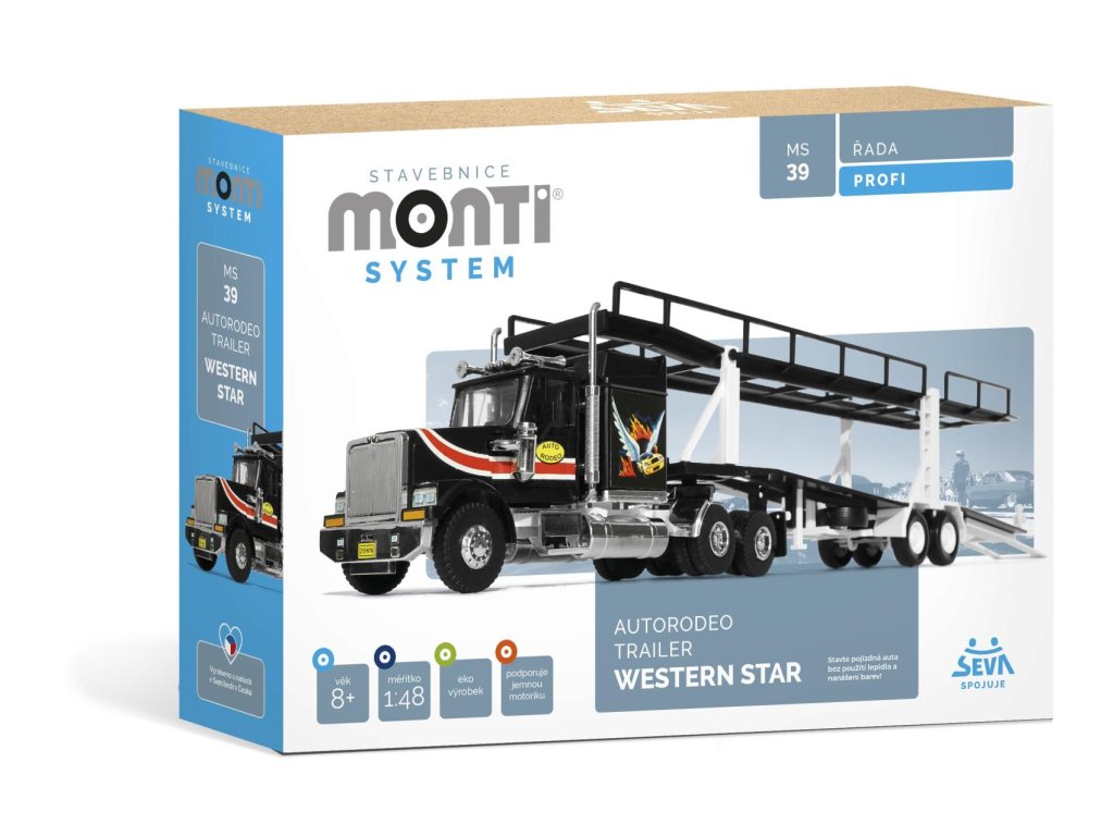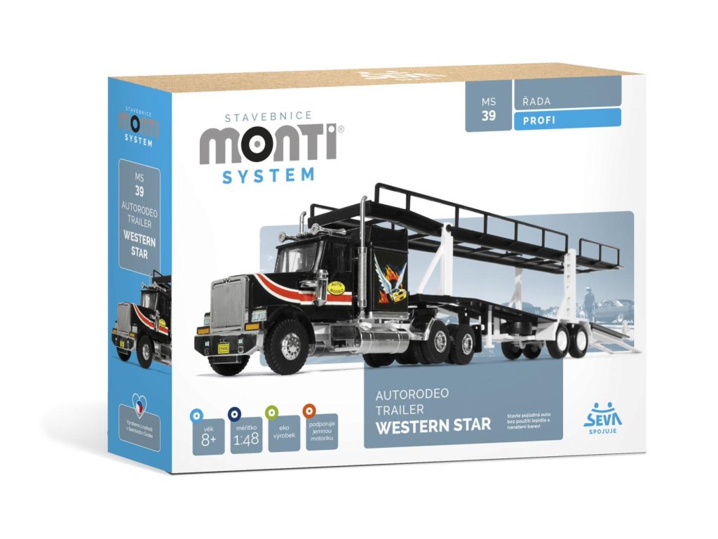 Stavebnice Monti System MS 39 Autorodeo Trailer Western star 1:48 v krabici 32x20x7,5cm