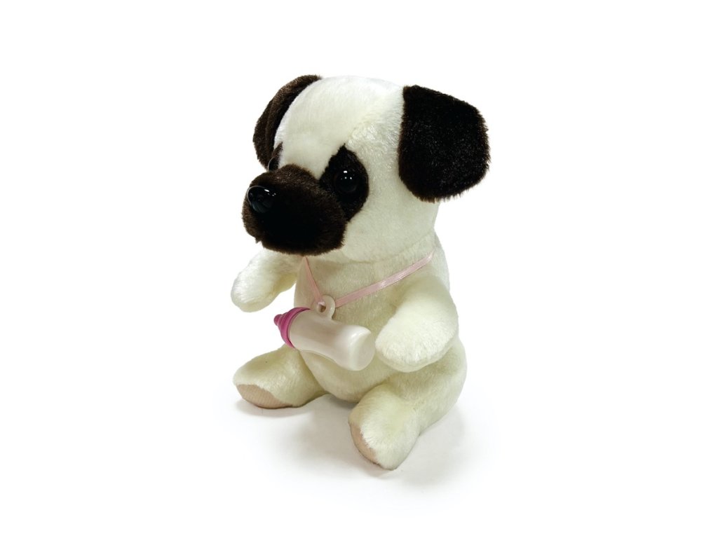 Přiložte láhev s mlékem k tlamě, ozve se zvuk pití. Vyjměte láhev s mlékem, ozve se roztomilý zvuk.