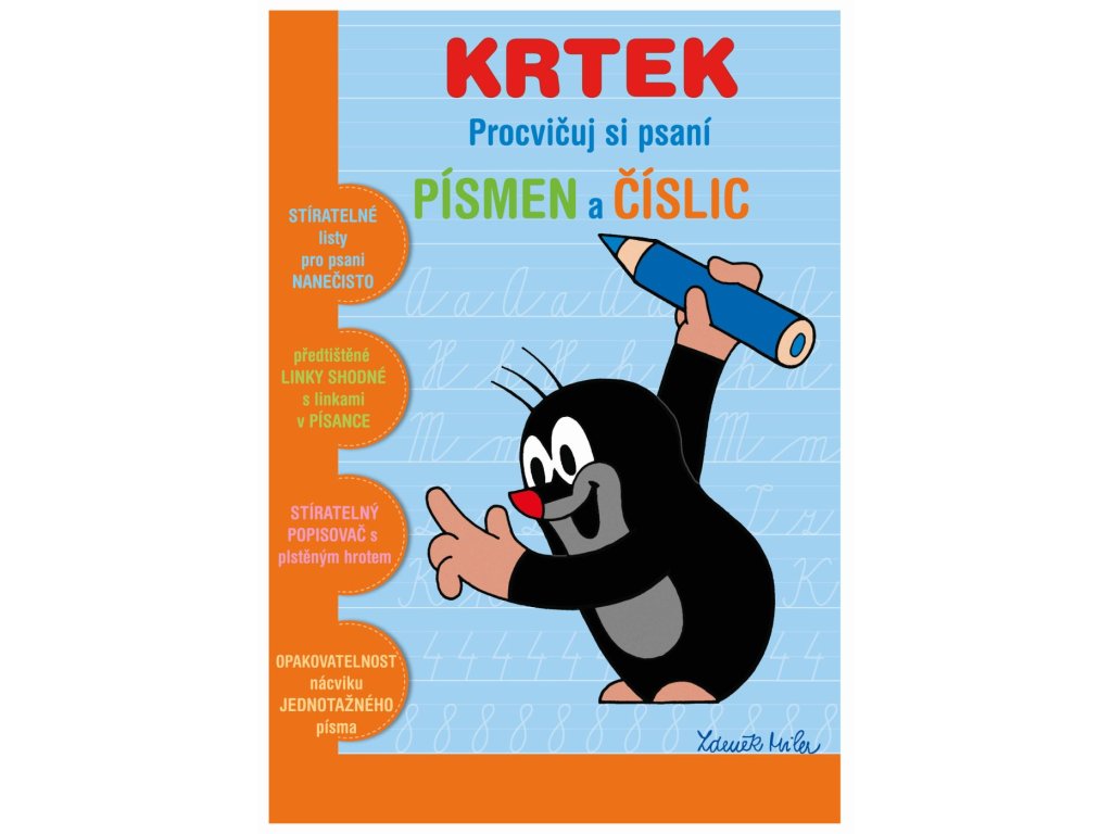 Stieratelný zošit "Precvičuj si písmena a číslice"+ stieratelný popisovač - Krtko 2