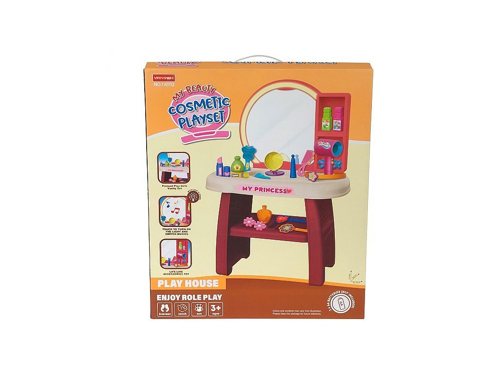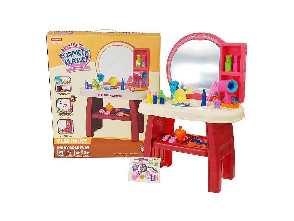 Kosmetický stůl s kosmetikou, stůl se zrcadlem a skříňkou