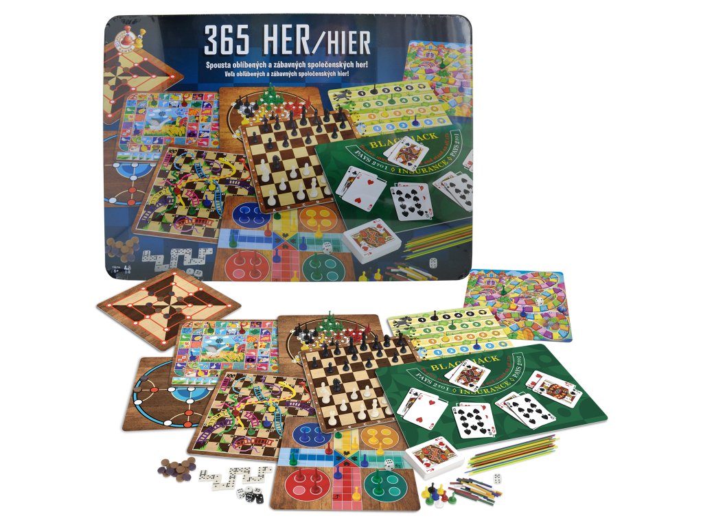 Objevte nekonečné možnosti zábavy s unikátní sadou 365 společenských her v praktickém plechovém pouzdře! Tato rozsáhlá sbírka her je ideální pro všechny od 6 let, pro 1 až 8 hráčů, a nabízí klasiku i nové výzvy, které vás zaručeně vtáhnou do světa strategie, taktiky i zábavy. Co vás čeká? • Šachy a jejich varianty: Nejstarší a nejfascinující stolní hra s kompletní sadou 32 figurek a deseti hracími deskami. Naučíte se různé způsoby hry od klasických šachů po varianty jako dvoutahové šachy, k.o. šachy, šachy královny a válečníků a mnoho dalších.• Dáma, mlýn, člověče nezlob se a mnoho dalších klasických stolních her: Pro všechny věkové kategorie a počet hráčů.• Karetní hry a kostkové hry: Od pokeru, blackjacku, přes rozmanité kostkové hry až po karetní detektiv či známé zábavné hry jako „Jdi na ryby!“• Strategické, sportovní a cestovní hry: Udržte mozek v kondici a zároveň si užijte skvělý čas s rodinou a přáteli, ať už doma nebo na cestách.• Hádanky a hlavolamy s zápalkami: Procvičte logiku a představivost s rozmanitými úkoly, které vás nejen zabaví, ale i potrápí. Praktické balení • Všechny hry jsou uloženy v elegantním a pevném plechovém pouzdře, které zaručuje bezpečné uskladnění a snadnou přenositelnost.• Balení obsahuje 10 oboustranných hracích desek, kompletní příslušenství a detailní návody ke všem hrám – pro maximální pohodlí a rychlé začátky. Pro koho je sada určena? • Pro jednotlivce i skupiny (1-8 hráčů).• Pro děti od 6 let i dospělé, kteří chtějí rozvíjet strategické myšlení, logiku a společenské dovednosti.• Pro všechny, kdo hledají kompletní hru na dlouhé večery, rodinné oslavy nebo cesty. Benefity: • Rozvíjí paměť, logiku, strategické plánování a týmovou spolupráci.• Skvělý způsob, jak trávit čas s rodinou i přáteli.• Perfektní dárek pro každého milovníka her a zábavy. Vydejte se na dobrodružství plné herních výzev a skvělé zábavy s 365 společenskými hrami v plechovém pouzdře – jedinečným setem pro každou příležitost!Objednejte nyní a zažijte svět her, který nikdy nekončí!