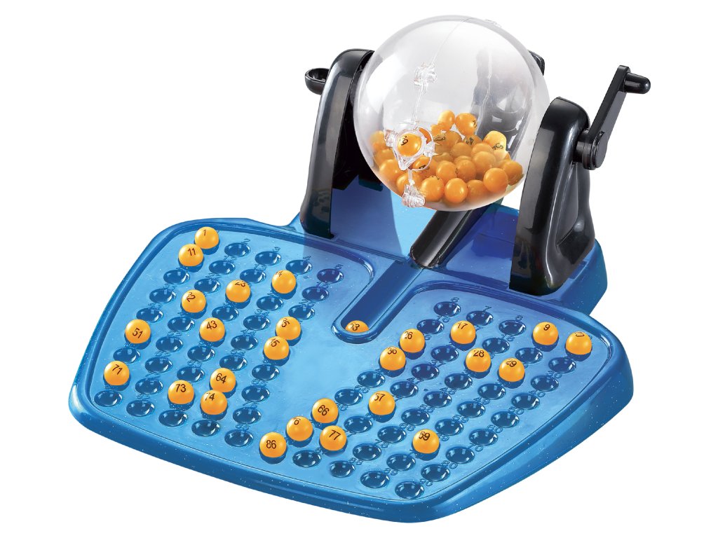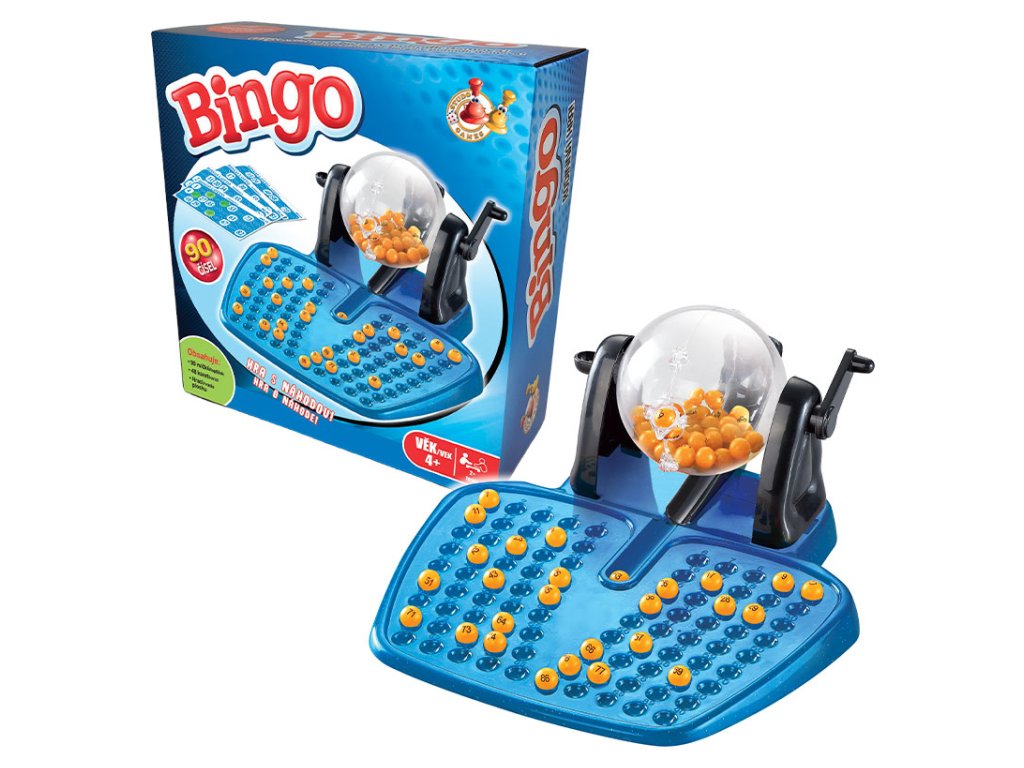 Doporučeno pro děti od 4 let Počet hráčů: 2-4 hráči Obsah: 90 čísel 48 karet Popis: Hra s náhodou! Užijte si hraní binga v pohodlí domova! Instrukce: Stisknutím tlačítka na vstupním otvoru vložte všech 90 kuliček do otočného kontejneru. Kuličky se otáčením kliky automaticky vykutálí ven. Hráči dostanou karty s 15 náhodně vytištěnými čísly. Jeden hráč si vytahuje čísla (od jedné do devadesáti) a všichni hráči si na svých kartách označí příslušné číslo, pokud ho tam mají. Ceny jsou přiděleny hráčům, kteří mají sadu čtyř vylosovaných čísel (4 čísla ve stejné řadě), sadu pěti vylosovaných čísel (5 čísel ve stejné řadě) nebo bingo (všechna čísla na kartě). Ceny mohou být uděleny také hráčům, kteří jako první získají dvě čísla a tři čísla ve stejné řadě.