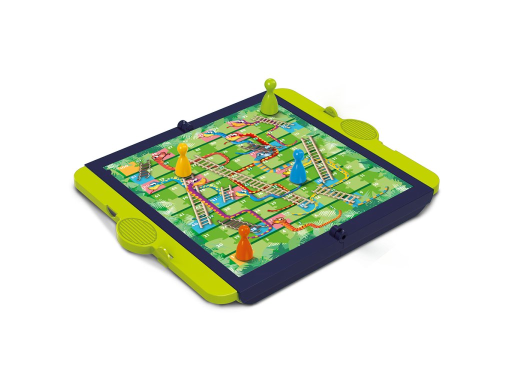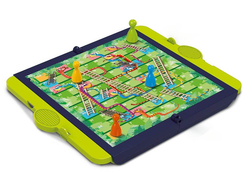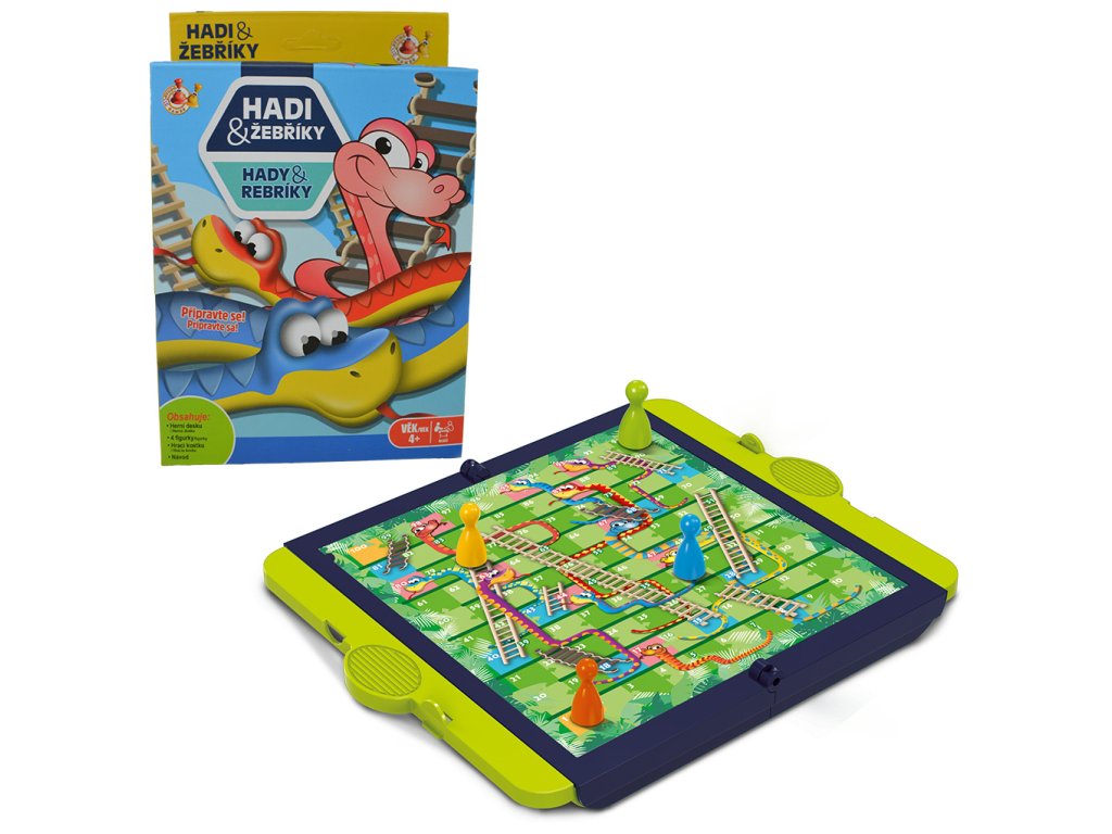 STUDO GAMES - Hadi a žebříky Klasická desková hra pro celou rodinu plná vzrušujících výstupů a pádů. Obsah balení: Hrací deska s čísly 1-100 Hrací figurky různých barev Hrací kostka Návod ke hře Cíl hry: Dostat se jako první přesným hodem na políčko číslo 100. Základní pravidla: Každý hráč si vybere figurku své barvy Hráči se střídají v házení kostkou Figurka se posouvá o počet políček podle hodu Po žebříku se stoupá nahoru Po hadovi se klouže dolů Speciální situace: Žebřík: Při přistání na spodní části vystoupáte nahoru Had: Při přistání na hlavě sklouzněte k ocasu Obsazené políčko: Přesuňte se na další volné pole Více hráčů: Pokud není místo, skočte na další volné pole Důležitá pravidla: Nelze nastoupit na žebřík ani hada uprostřed Na políčko 100 musíte přijít přesným hodem Při přistání na obsazeném poli se přesunete vpřed Vítězství: Vyhrává hráč, který jako první dosáhne přesným hodem políčka číslo 100. Zábavná hra pro celou rodinu, která učí děti počítat a vyrovnávat se s úspěchy i nezdary.