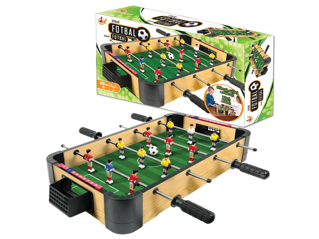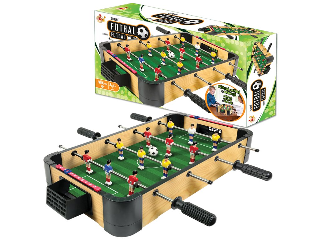 Stolní fotbal 40 cm - Zábava pro celou rodinu! Přineste fotbalové vzrušení přímo do vašeho domova! Tento kompaktní stolní fotbal o velikosti 40 cm je perfektní volbou pro všechny milovníky fotbalu od 3 let. Hra kombinuje rychlost, strategii a nekonečnou zábavu pro dva hráče současně. Proč si vybrat náš stolní fotbal? Ideální velikost: 40 cm - perfektní pro dětské pokoje i menší prostory Pro 2 hráče: Skvělá hra pro sourozence, přátele nebo rodiče s dětmi Jednoduché ovládání: Intuitivní otáčecí tyčky s figurkami Jasná pravidla: První hráč s 9 góly vyhrává! Jak se hraje? 1. Start hry: Míček se umístí k nohám centrální figurky2. Zahájení: Rozhodne hod mincí, kdo začne3. Hra: Pomocí otáčecích tyček ovládejte figurky a snažte se vstřelit gól do soupeřovy branky4. Výhra: Vítězí ten, kdo první dosáhne 9 gólů! Důležité informace: ✅ Věk: Od 3 let✅ Počet hráčů: 2⚠️ Upozornění: Vyžaduje sestavení dospělou osobou⚠️ Bezpečnost: Není vhodné pro děti do 3 let - obsahuje malé části Co obsahuje balení: • Herní stůl• Otáčecí tyčky s figurkami• Míček• Síťky do branek• Návod na sestavení Stolní fotbal je skvělý způsob, jak strávit kvalitní čas s rodinou a přáteli. Rozvíjí koordinaci očí a rukou, strategické myšlení a poskytuje hodiny zábavy!
