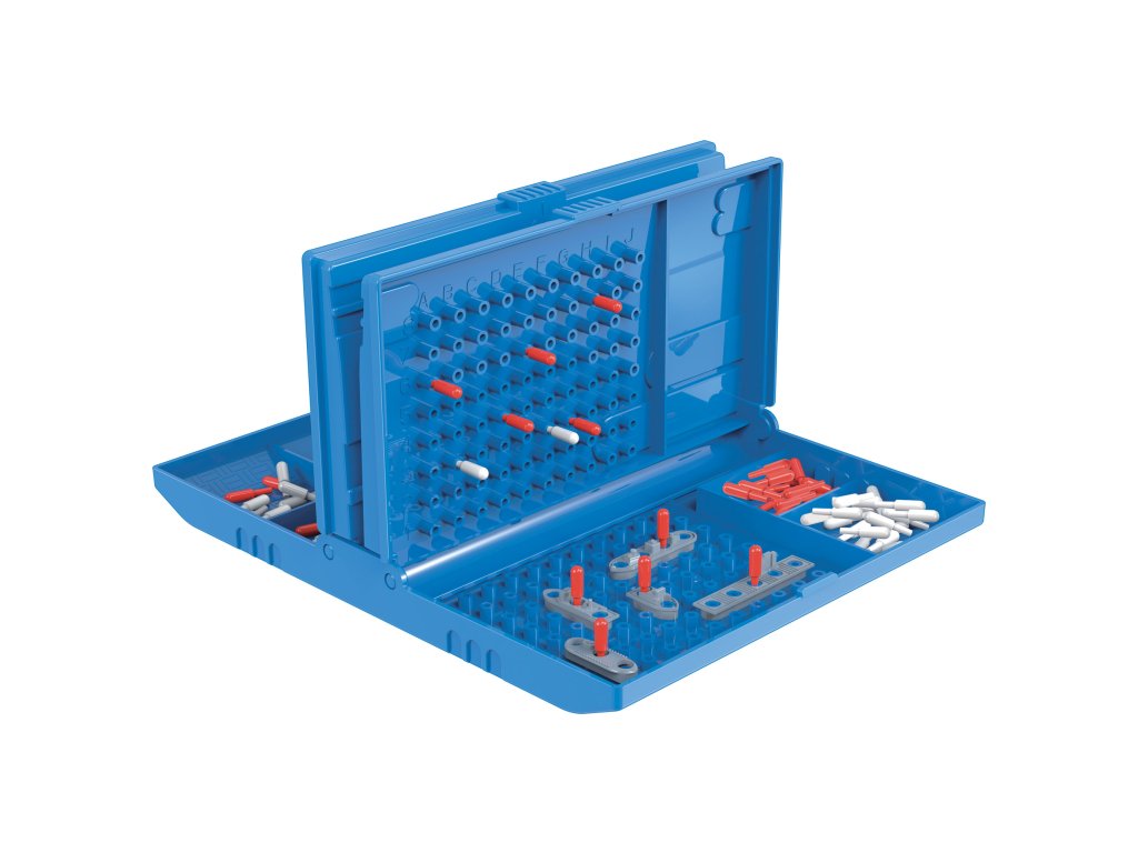 Připravte se na epickou námořní bitvu! Klasická strategická hra Námořní bitva od STUDO GAMES přináší vzrušující souboj na moři! Rozmístěte svou flotilu, volejte souřadnice a snažte se potopit nepřátelské lodě dříve, než váš protivník zničí vaši flotilu. Tato plnohodnotná verze nabízí větší herní plochu a komponenty pro intenzivnější strategický zážitek. Jak hrát: 1. Strategicky rozmístěte vaše lodě - Umístěte všech 5 válečných lodí horizontálně nebo vertikálně na vaše bitevní pole 2. Hádejte souřadnice - Střídejte se v hlášení pozic (např. C-7) a snažte se zasáhnout nepřátelské lodě 3. Zaznamenávejte trefy a minutí - Bílé kolíky značí minutí, červené kolíky zásahy 4. Pokračujte při úspěchu - Po zásahu získáváte další tah, dokud neminete 5. Hlaste potopené lodě - Když jsou všechny části lodi zasaženy, loď je potopena 6. Vítězství dosáhnete - Potopením všech 5 nepřátelských lodí Obsah balení: 2× herní desky s odklopnými kryty pro soukromí 2× sada válečných lodí různých velikostí 2× sada červených kolíků (pro označení zásahů) 4× sada bílých kolíků (pro označení minutí) Přehledné úložné přihrádky Návod na hru Strategické tipy: Po prvním zásahu pokračujte v ostřelování okolních políček