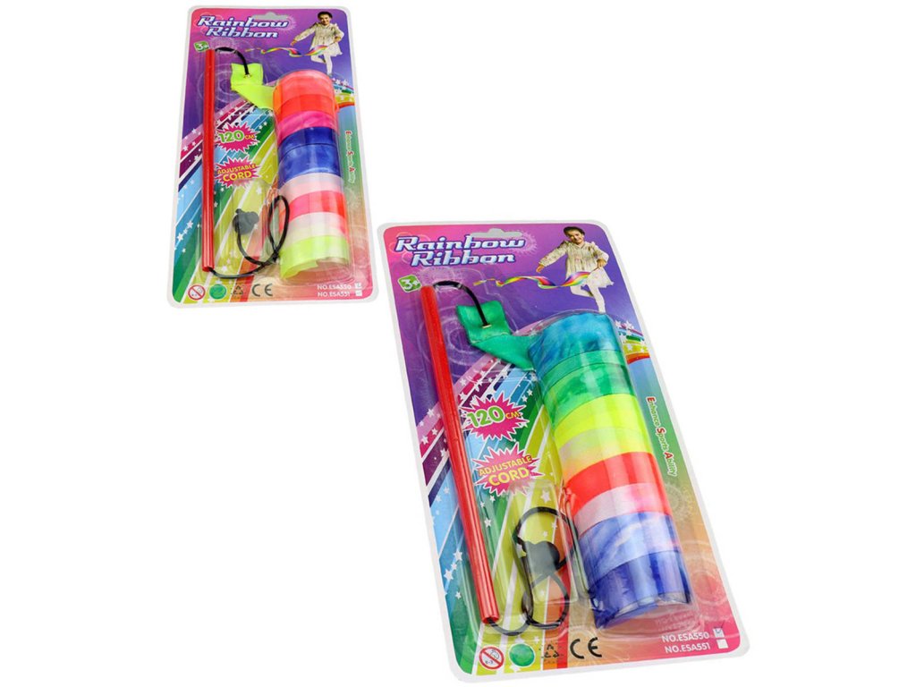 Stuha dětská gymnastická duhová 120cm s hůlkou na kartě 3 barvy